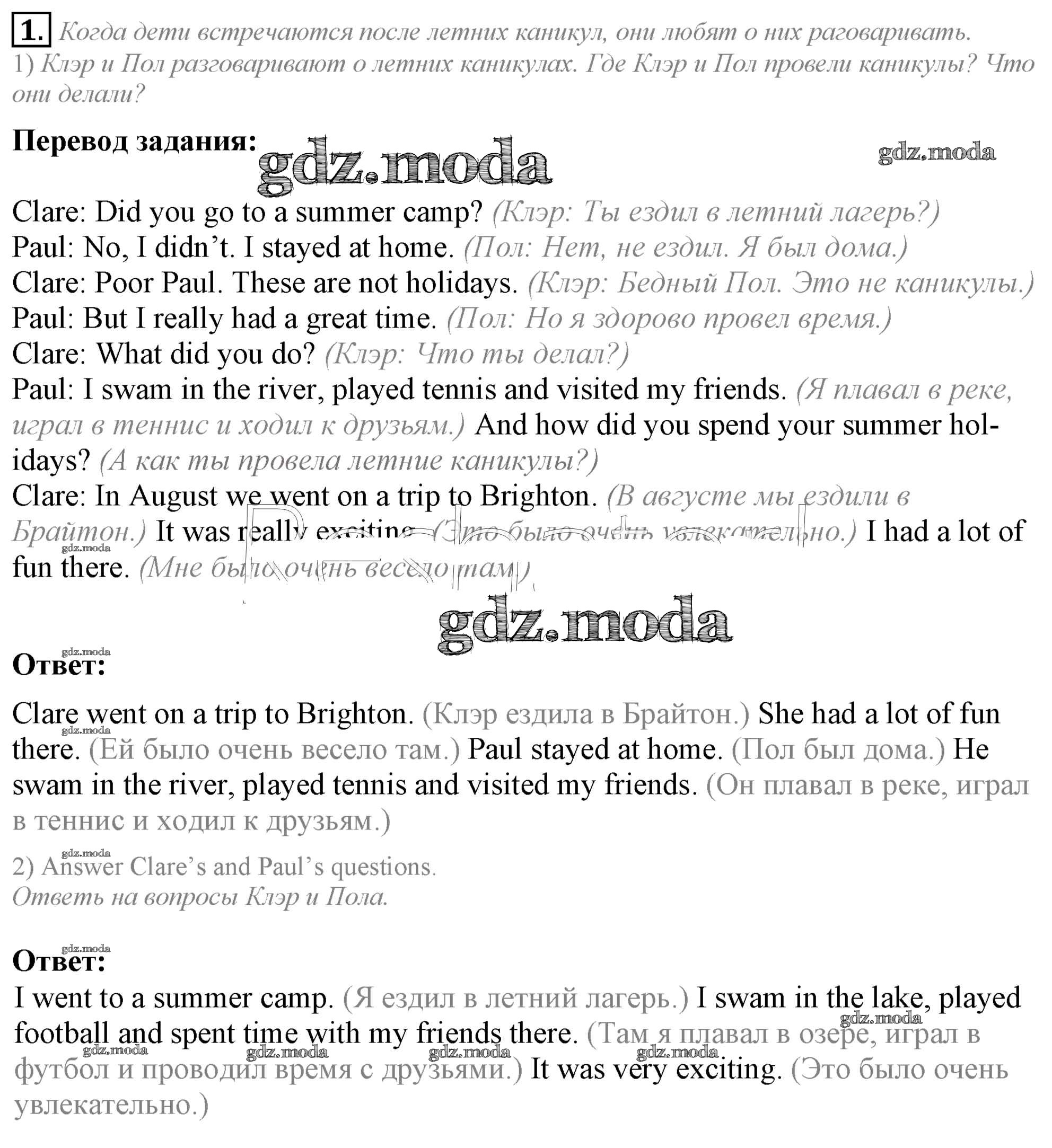 ОТВЕТ на задание № 1 Учебник по Английскому языку 5 класс Кузовлёв УМК