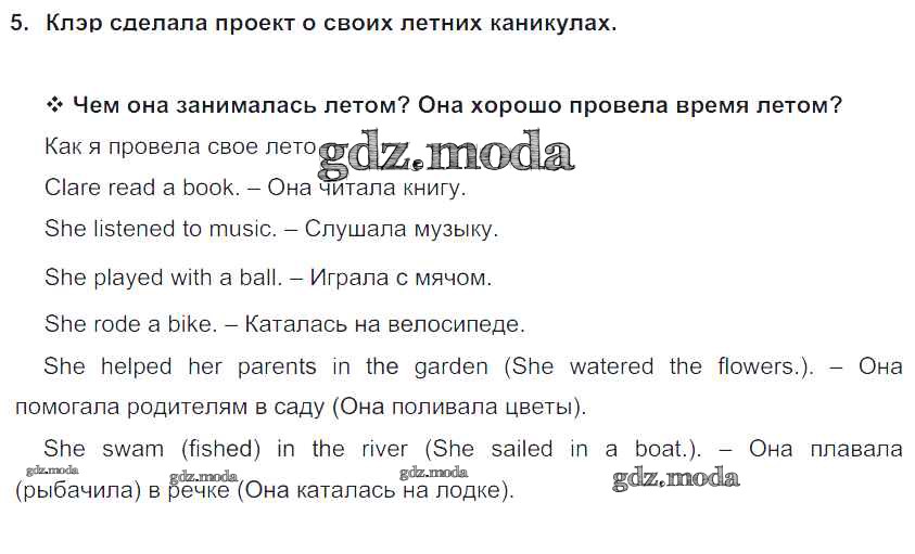ГДЗ решение к заданию № 5 Английский язык 5 класс Кузовлёв В.П. Просвещение 2015 ФГОС бесплатно на гдз.мода!