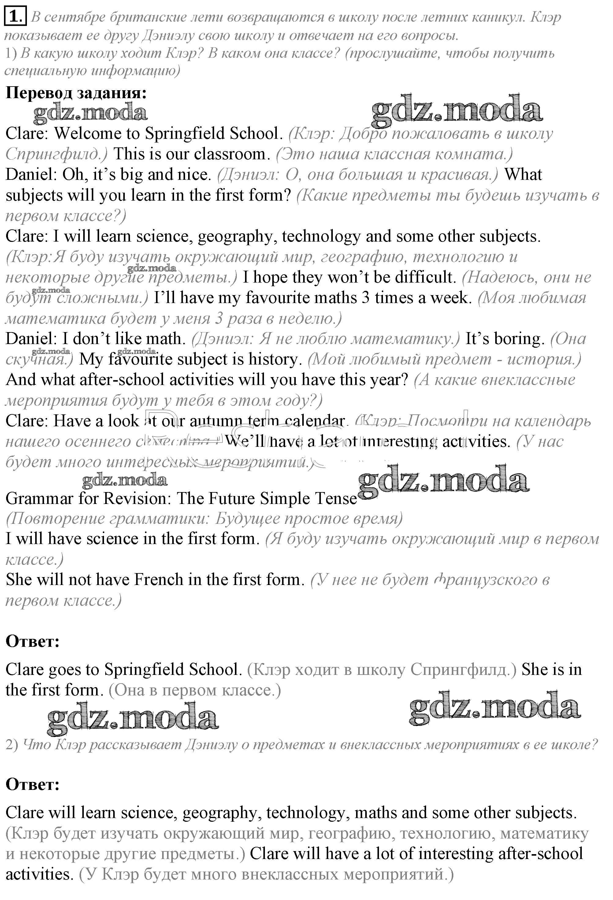 ОТВЕТ на задание № 1 Учебник по Английскому языку 5 класс Кузовлёв УМК