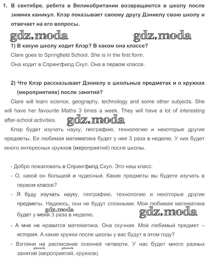 ГДЗ решение к заданию № 1 Английский язык 5 класс Кузовлёв В.П. Просвещение 2015 ФГОС бесплатно на гдз.мода!