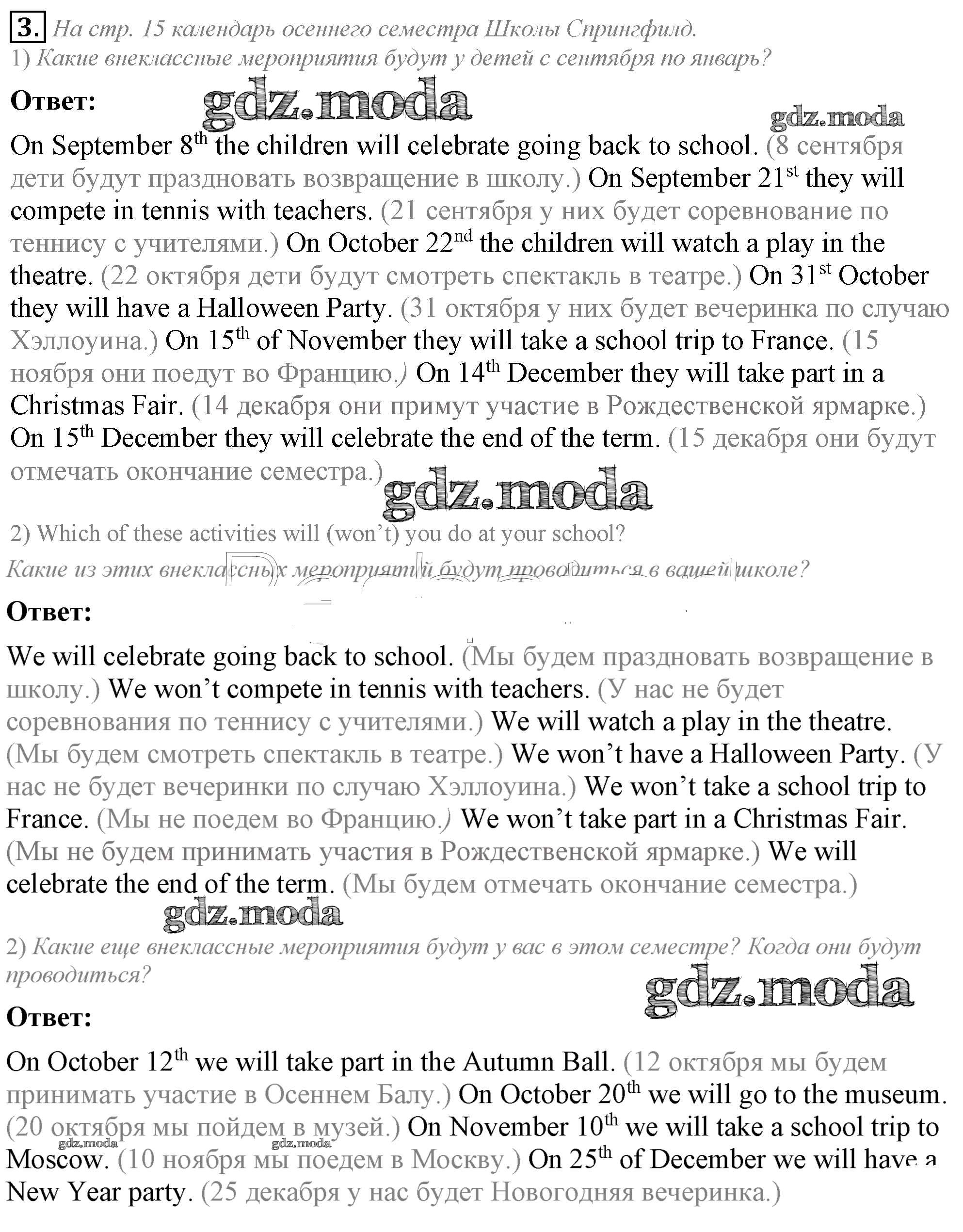 ГДЗ решение к заданию № 3 Английский язык 5 класс Кузовлёв В.П. Просвещение 2015 ФГОС бесплатно на гдз.мода!
