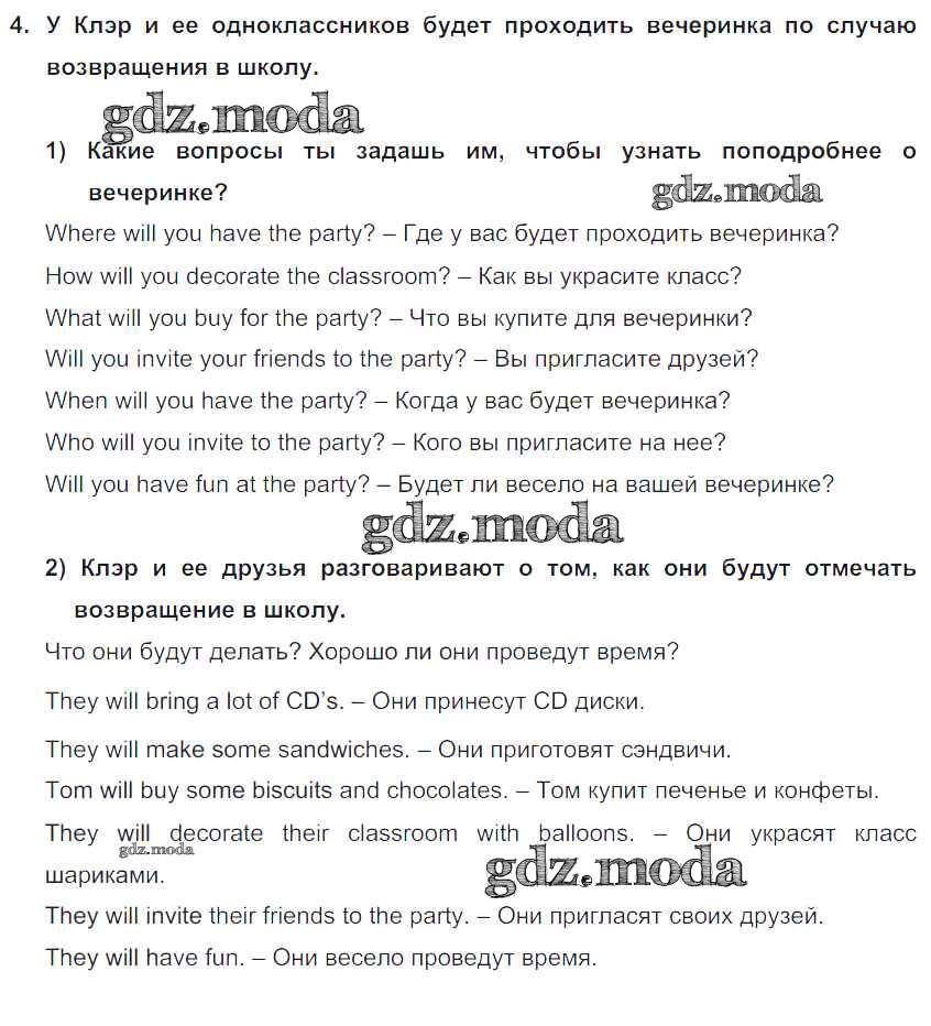 ГДЗ решение к заданию № 4 Английский язык 5 класс Кузовлёв В.П. Просвещение 2015 ФГОС бесплатно на гдз.мода!