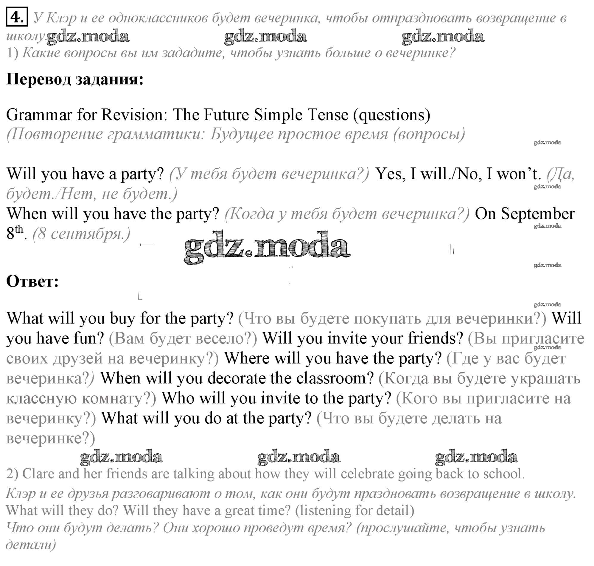 ОТВЕТ на задание № 4 Учебник по Английскому языку 5 класс Кузовлёв УМК