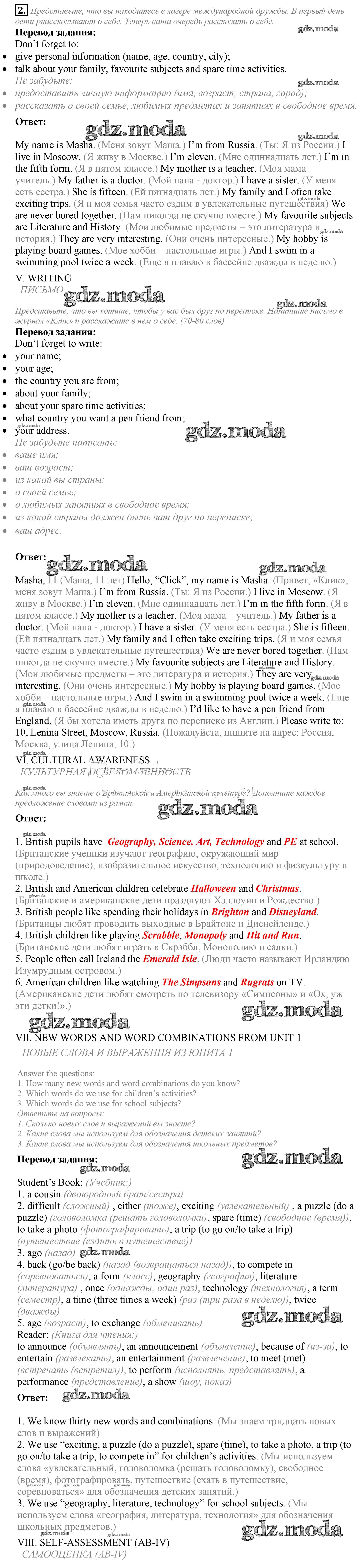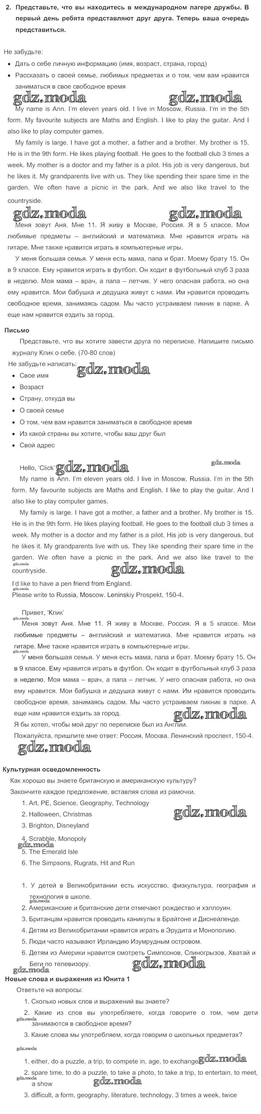 ГДЗ решение к заданию № 2 Английский язык 5 класс Кузовлёв В.П. Просвещение 2015 ФГОС бесплатно на гдз.мода!
