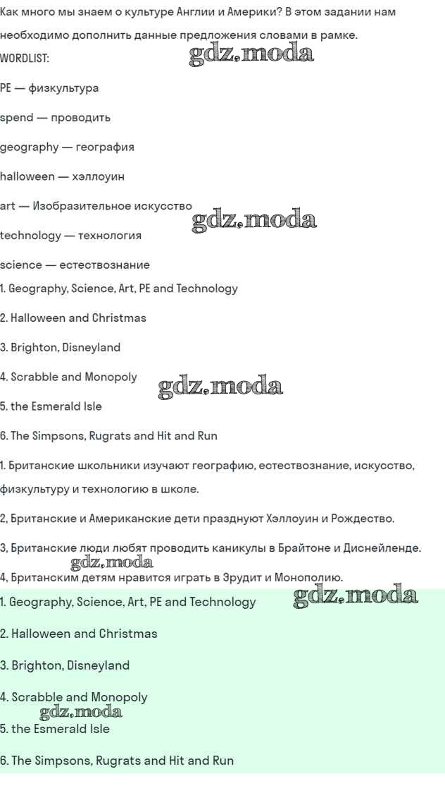 ОТВЕТ на задание № 2 Учебник по Английскому языку 5 класс Кузовлёв УМК