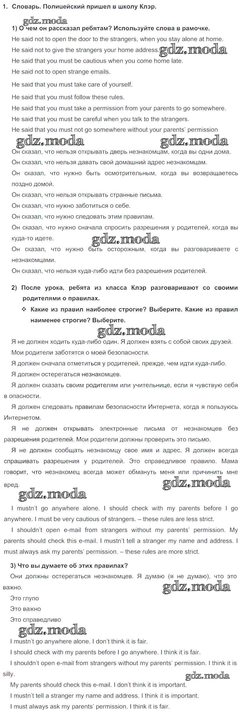 ГДЗ решение к заданию № 1 Английский язык 5 класс Кузовлёв В.П. Просвещение 2015 ФГОС бесплатно на гдз.мода!