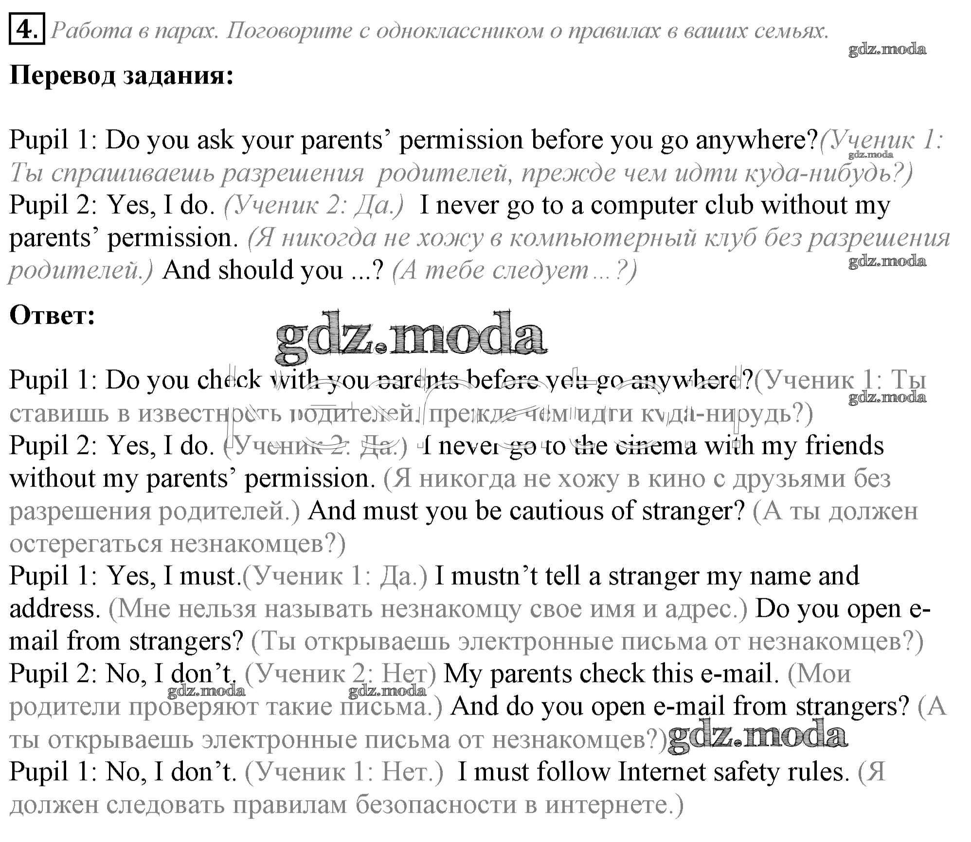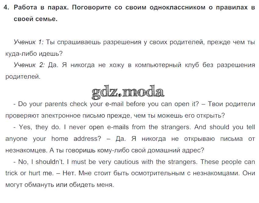 ГДЗ решение к заданию № 4 Английский язык 5 класс Кузовлёв В.П. Просвещение 2015 ФГОС бесплатно на гдз.мода!