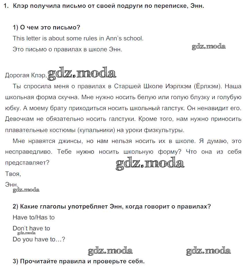 ГДЗ решение к заданию № 1 Английский язык 5 класс Кузовлёв В.П. Просвещение 2015 ФГОС бесплатно на гдз.мода!