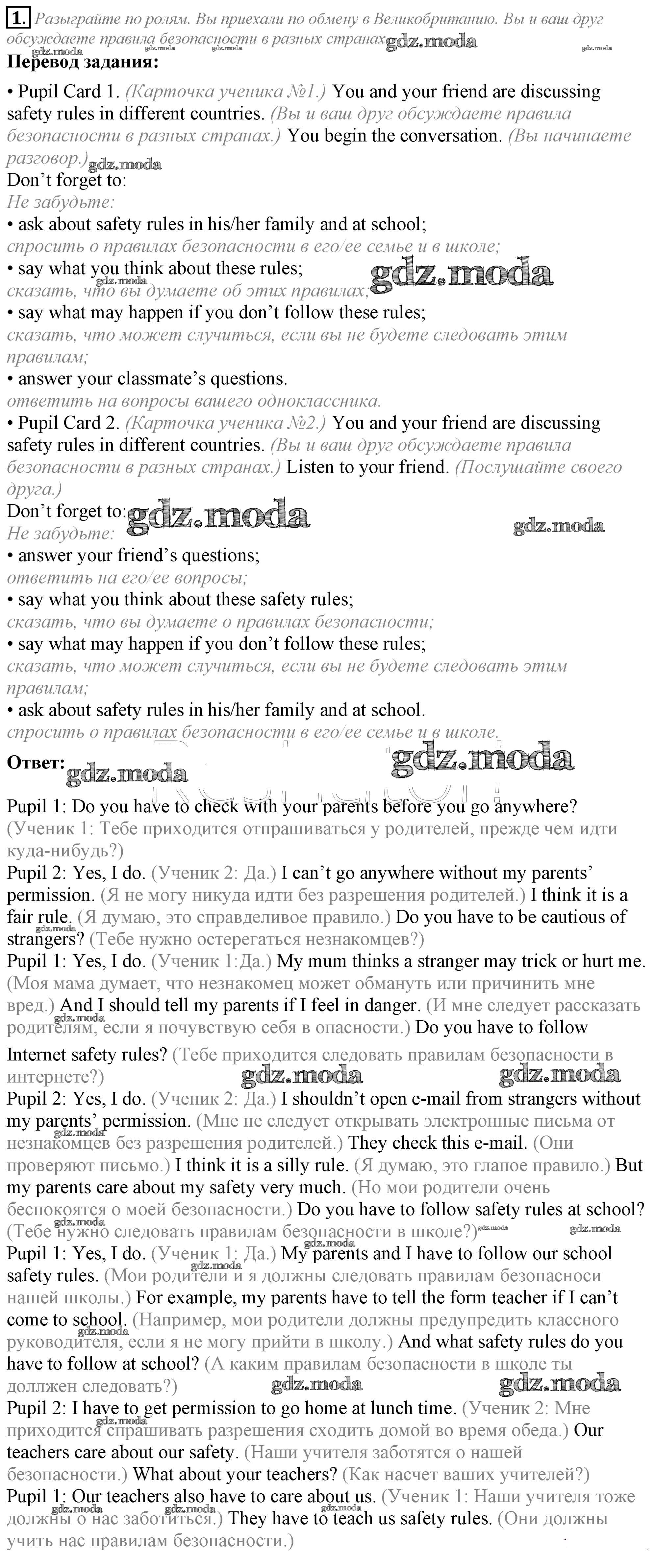 ГДЗ решение к заданию № 1 Английский язык 5 класс Кузовлёв В.П. Просвещение 2015 ФГОС бесплатно на гдз.мода!
