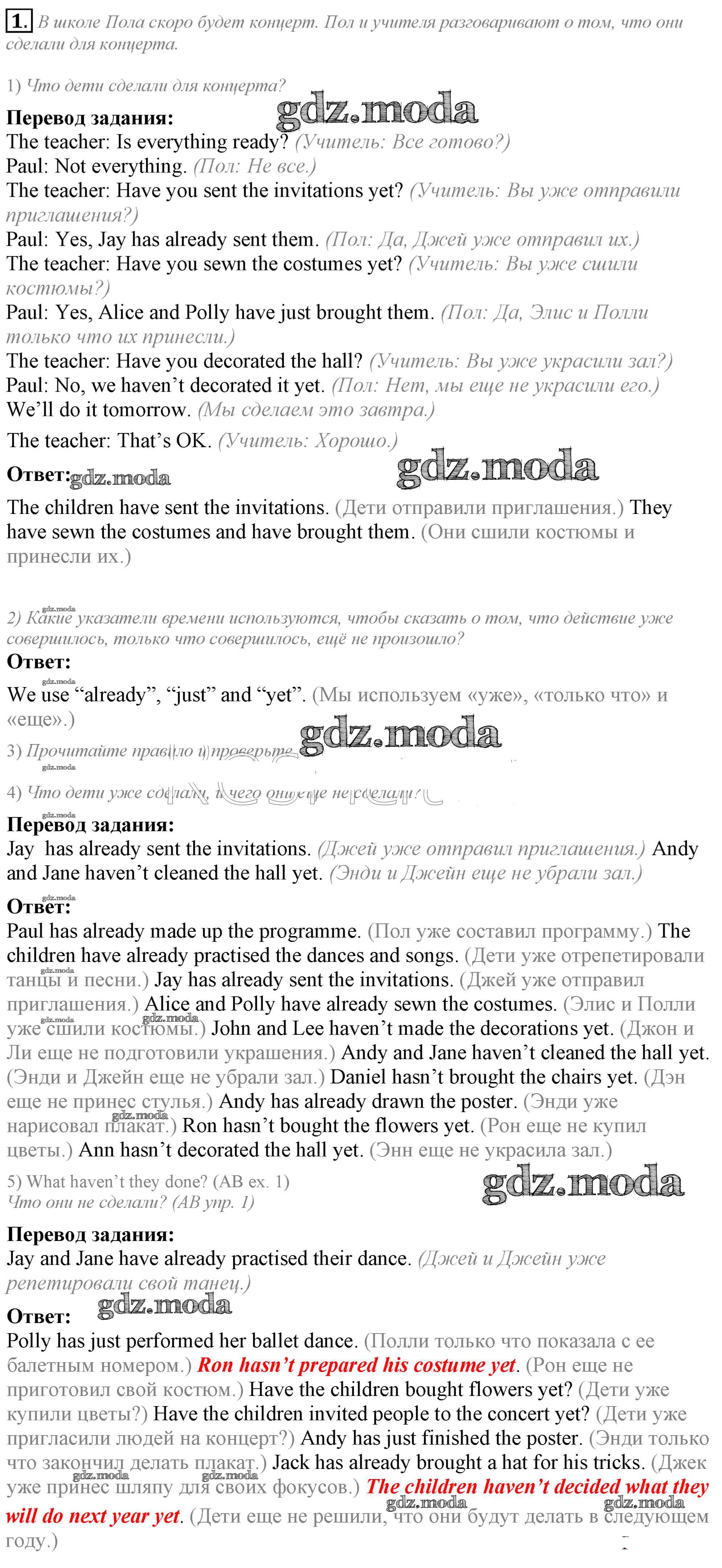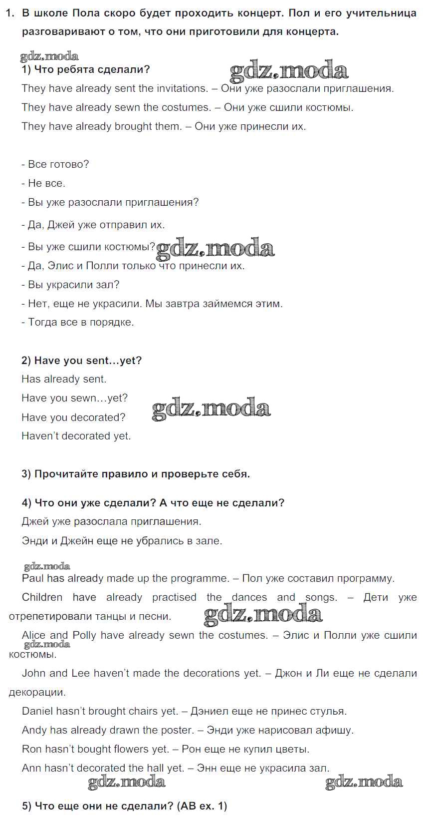 ГДЗ решение к заданию № 1 Английский язык 5 класс Кузовлёв В.П. Просвещение 2015 ФГОС бесплатно на гдз.мода!