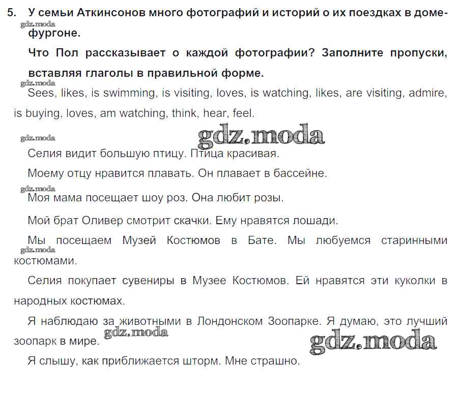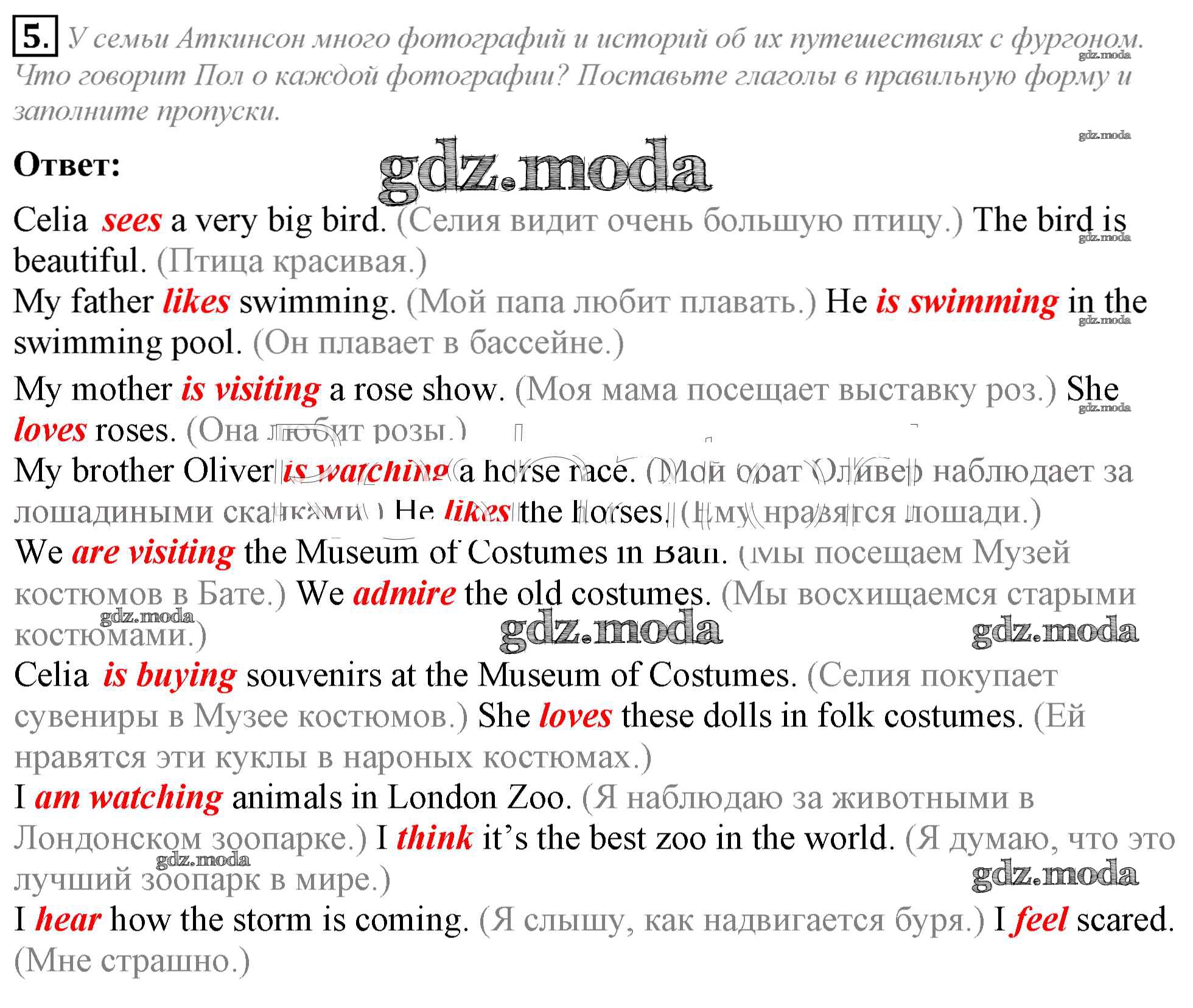 ГДЗ решение к заданию № 5 Английский язык 5 класс Кузовлёв В.П. Просвещение 2015 ФГОС бесплатно на гдз.мода!