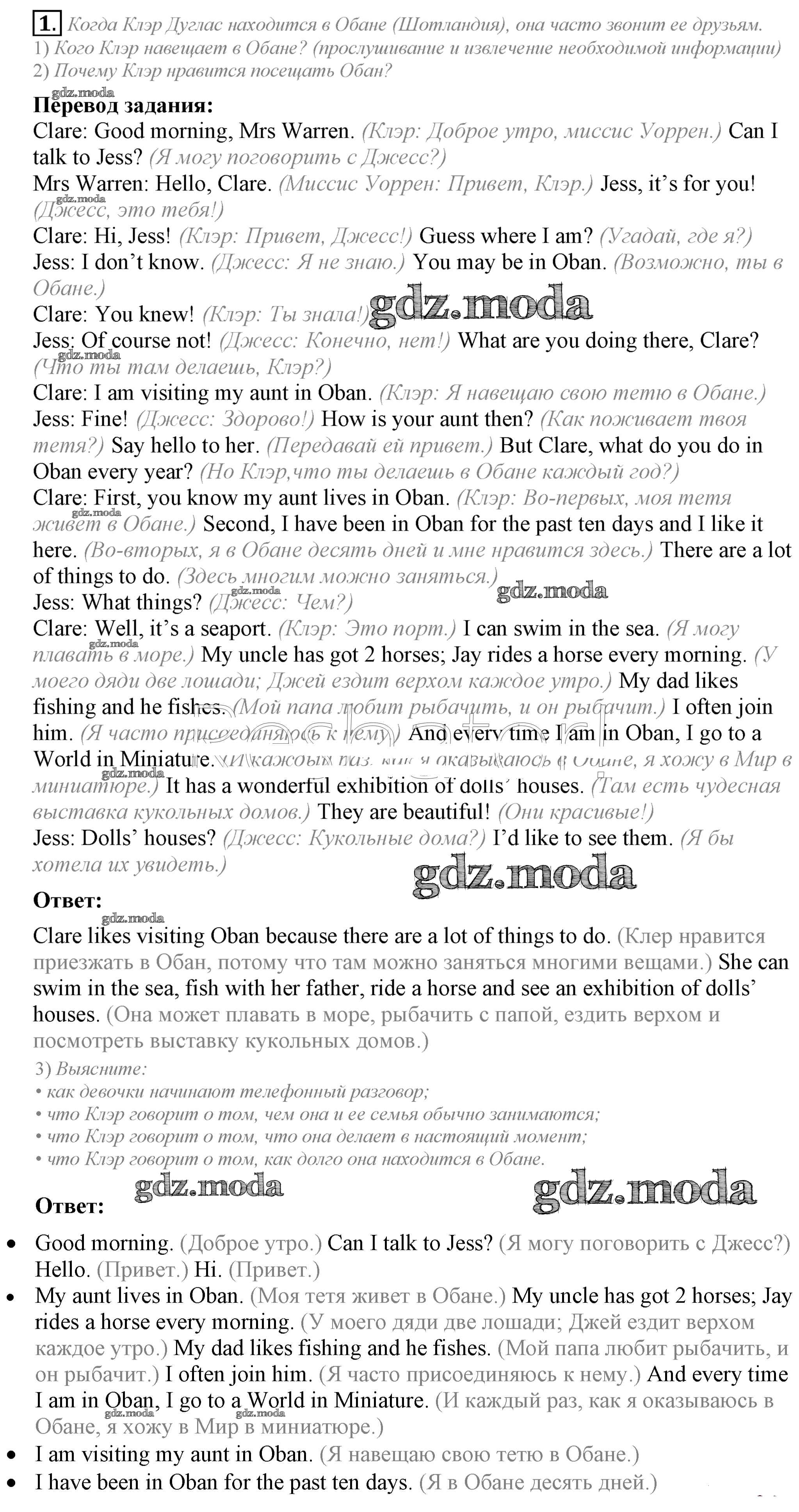 ОТВЕТ на задание № 1 Учебник по Английскому языку 5 класс Кузовлёв УМК