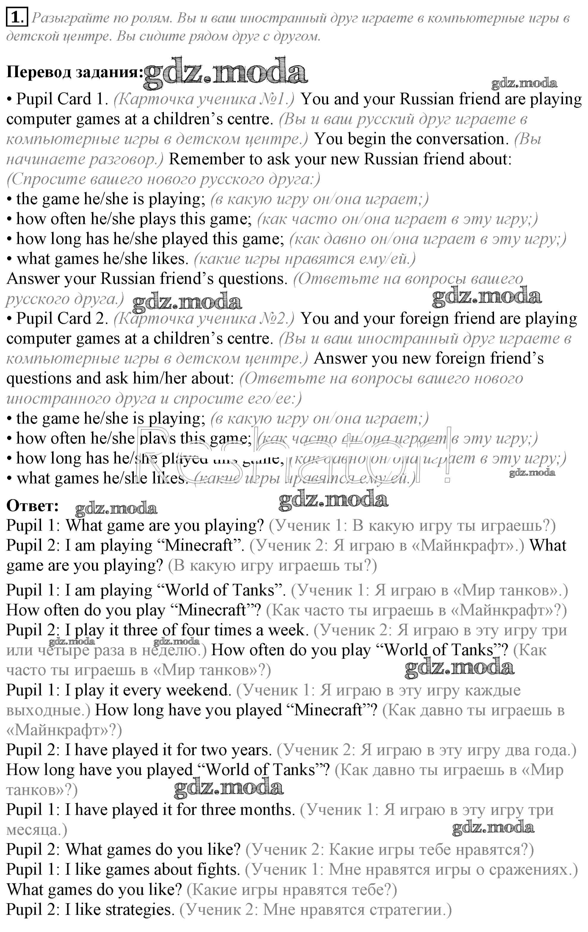 ГДЗ решение к заданию № 1 Английский язык 5 класс Кузовлёв В.П. Просвещение 2015 ФГОС бесплатно на гдз.мода!
