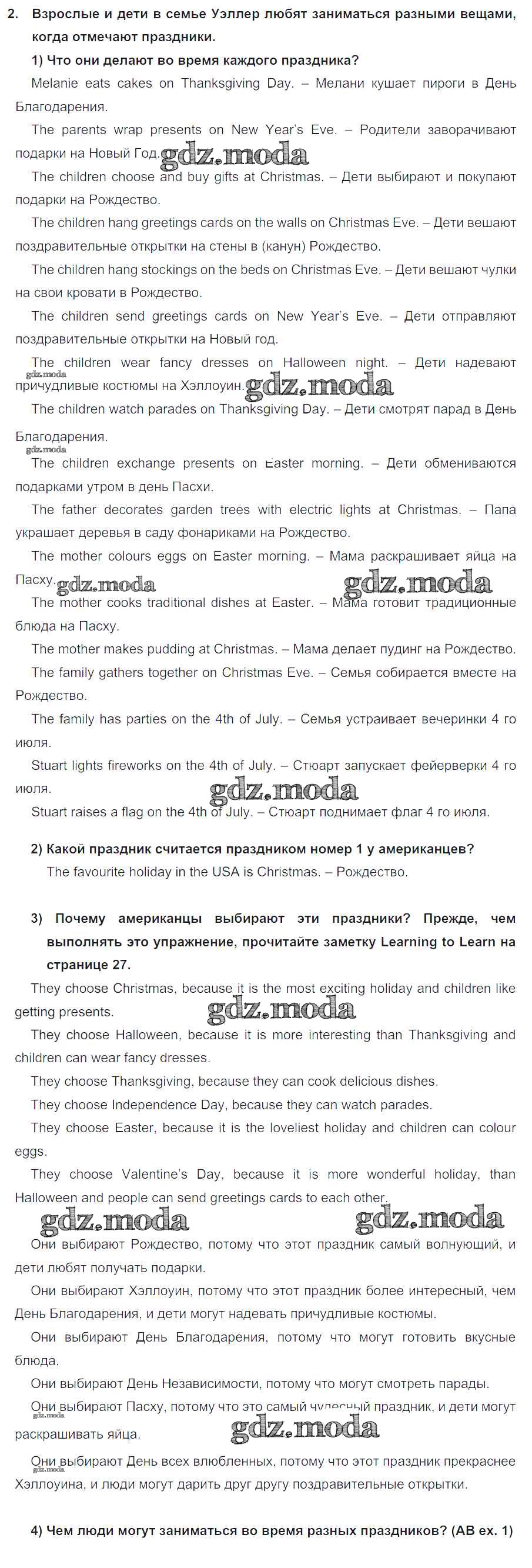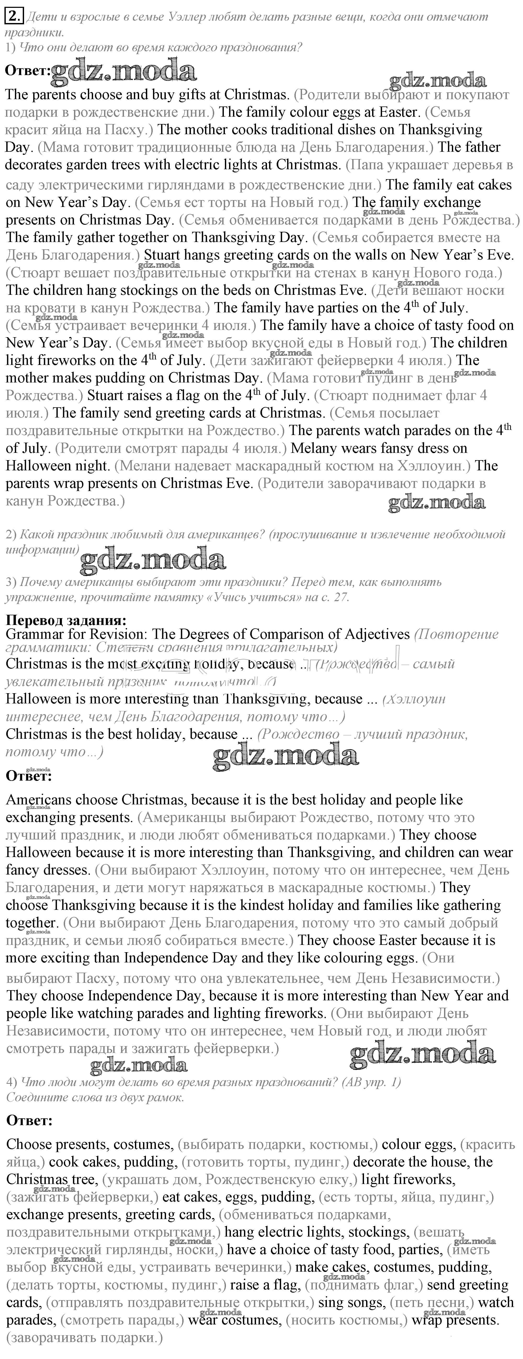 ГДЗ решение к заданию № 2 Английский язык 5 класс Кузовлёв В.П. Просвещение 2015 ФГОС бесплатно на гдз.мода!