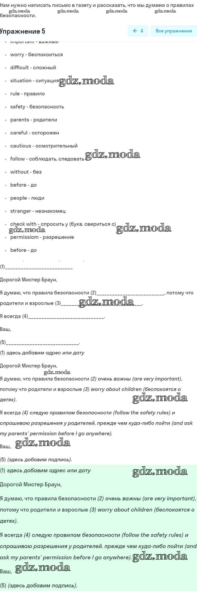 ГДЗ решение к заданию № 5 Английский язык 5 класс Кузовлёв В.П. Просвещение 2015 ФГОС бесплатно на гдз.мода!