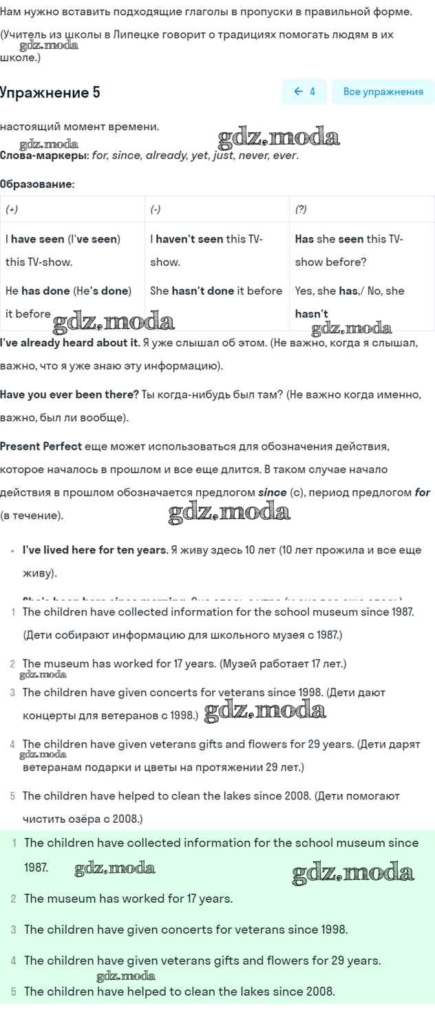 ОТВЕТ на задание № 5 Учебник по Английскому языку 5 класс Кузовлёв УМК