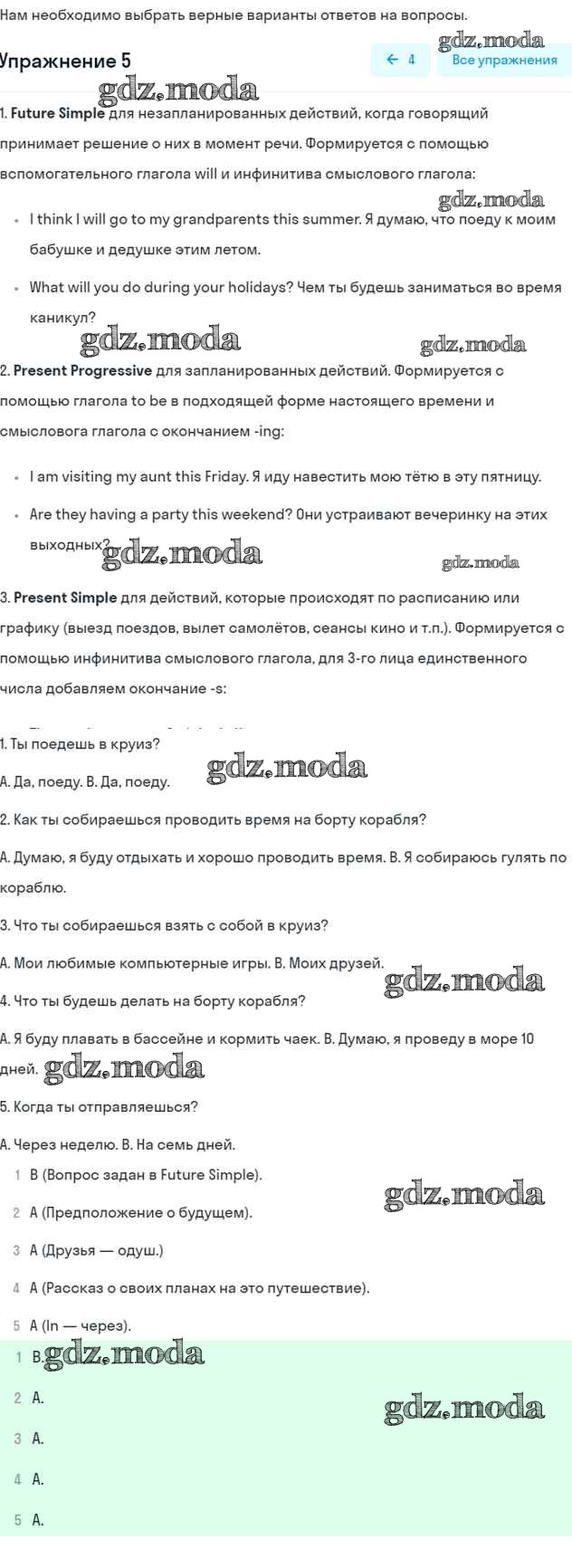 ОТВЕТ на задание № 5 Учебник по Английскому языку 5 класс Кузовлёв УМК