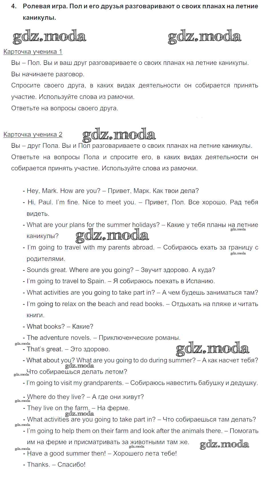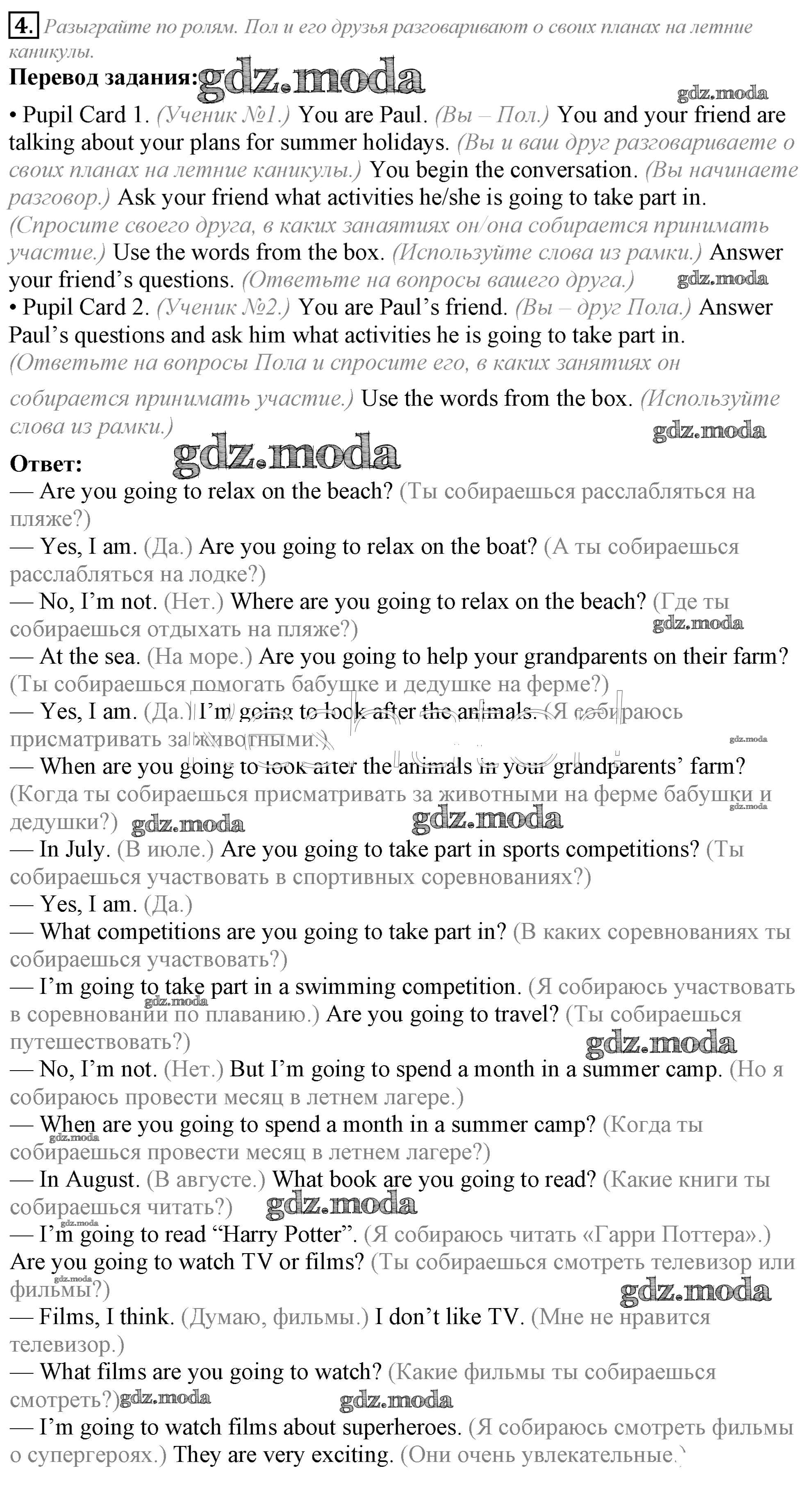 ГДЗ решение к заданию № 4 Английский язык 5 класс Кузовлёв В.П. Просвещение 2015 ФГОС бесплатно на гдз.мода!