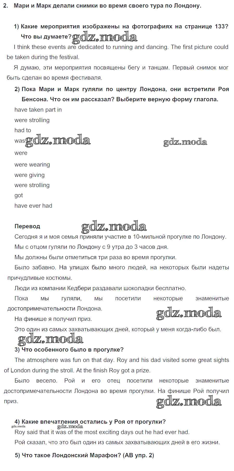 ОТВЕТ на задание № 2 Учебник по Английскому языку 5 класс Кузовлёв УМК