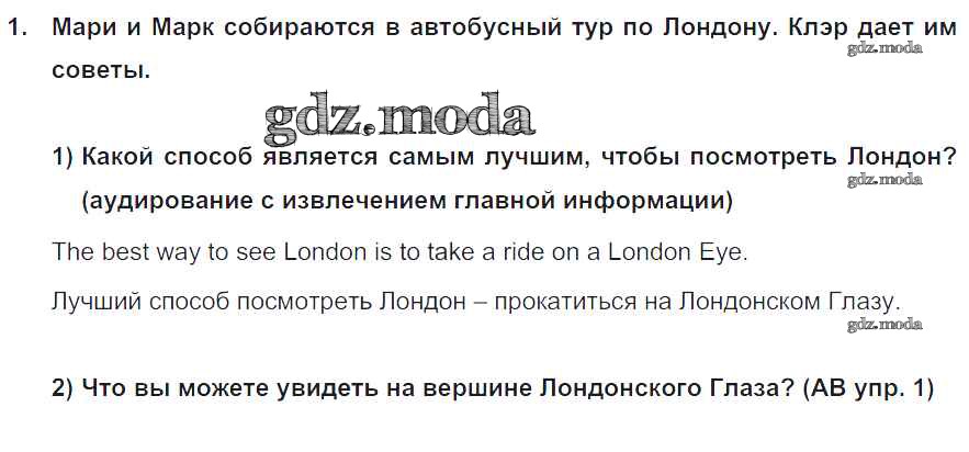ОТВЕТ на задание № 1 Учебник по Английскому языку 5 класс Кузовлёв УМК