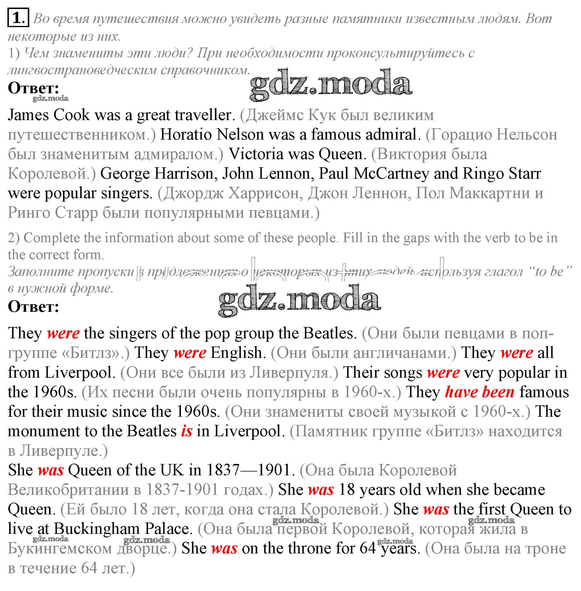ГДЗ решение к заданию № 1 Английский язык 5 класс Кузовлёв В.П. Просвещение 2015 ФГОС бесплатно на гдз.мода!