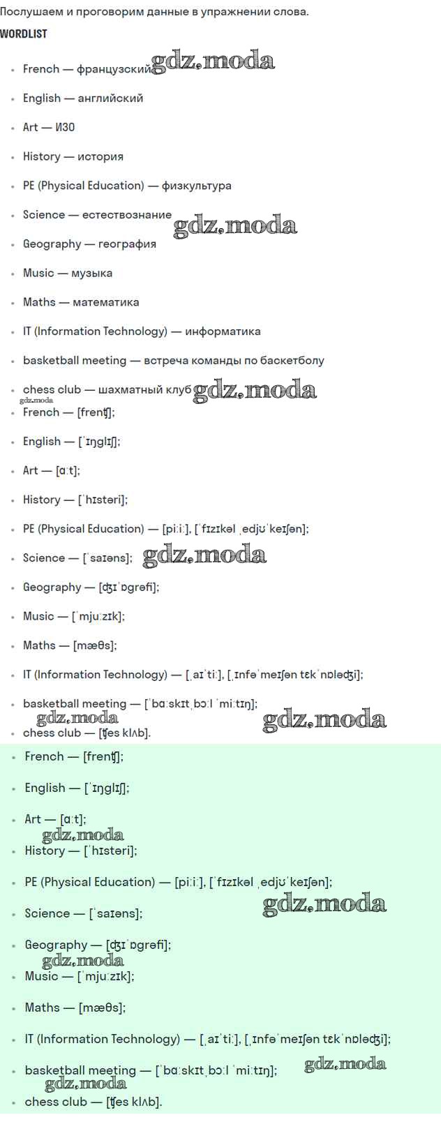 ГДЗ решение к заданию № 20 Английский язык 5 класс Комарова Ю.А. Русское слово 2021 ФГОС бесплатно на гдз.мода!
