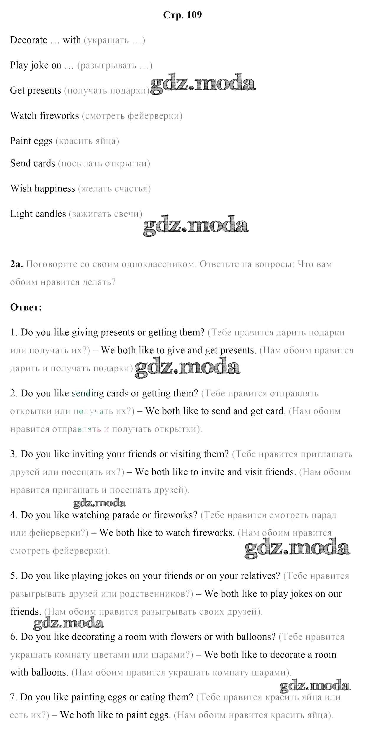 ГДЗ решение к заданию № 109 Английский язык 5 класс Лапицкая Л.М. Народная асвета 2020 Часть 1, Часть 2 ФГОС бесплатно на гдз.мода!