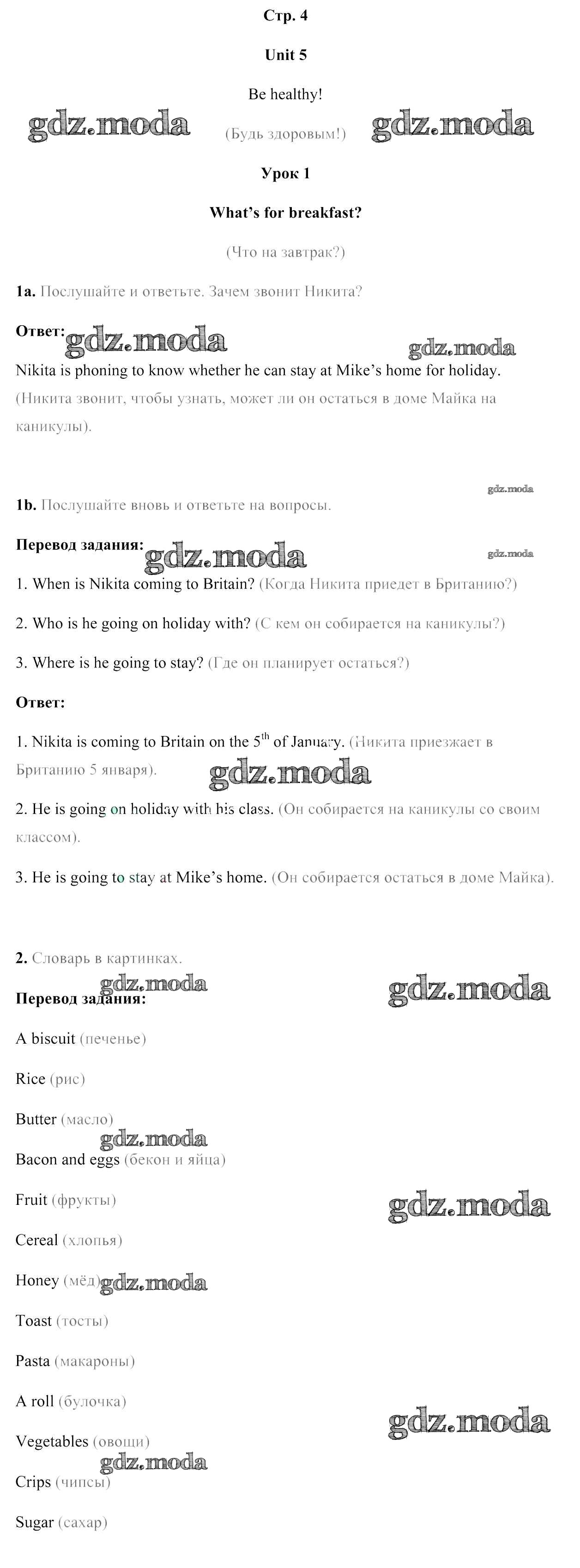 ГДЗ решение к заданию № 4 Английский язык 5 класс Лапицкая Л.М. Народная асвета 2020 Часть 1, Часть 2 ФГОС бесплатно на гдз.мода!