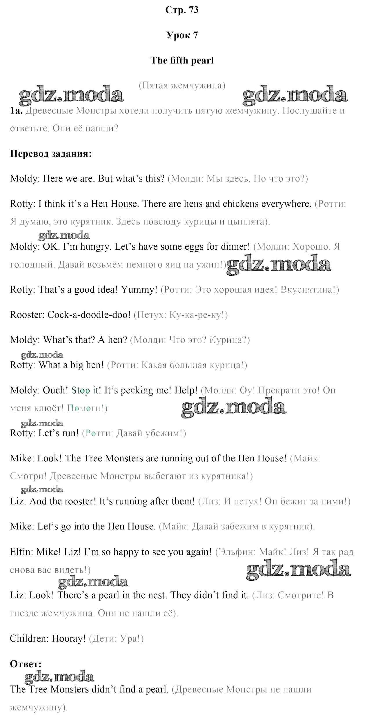 ОТВЕТ на задание № 73 Учебник по Английскому языку 5 класс Лапицкая