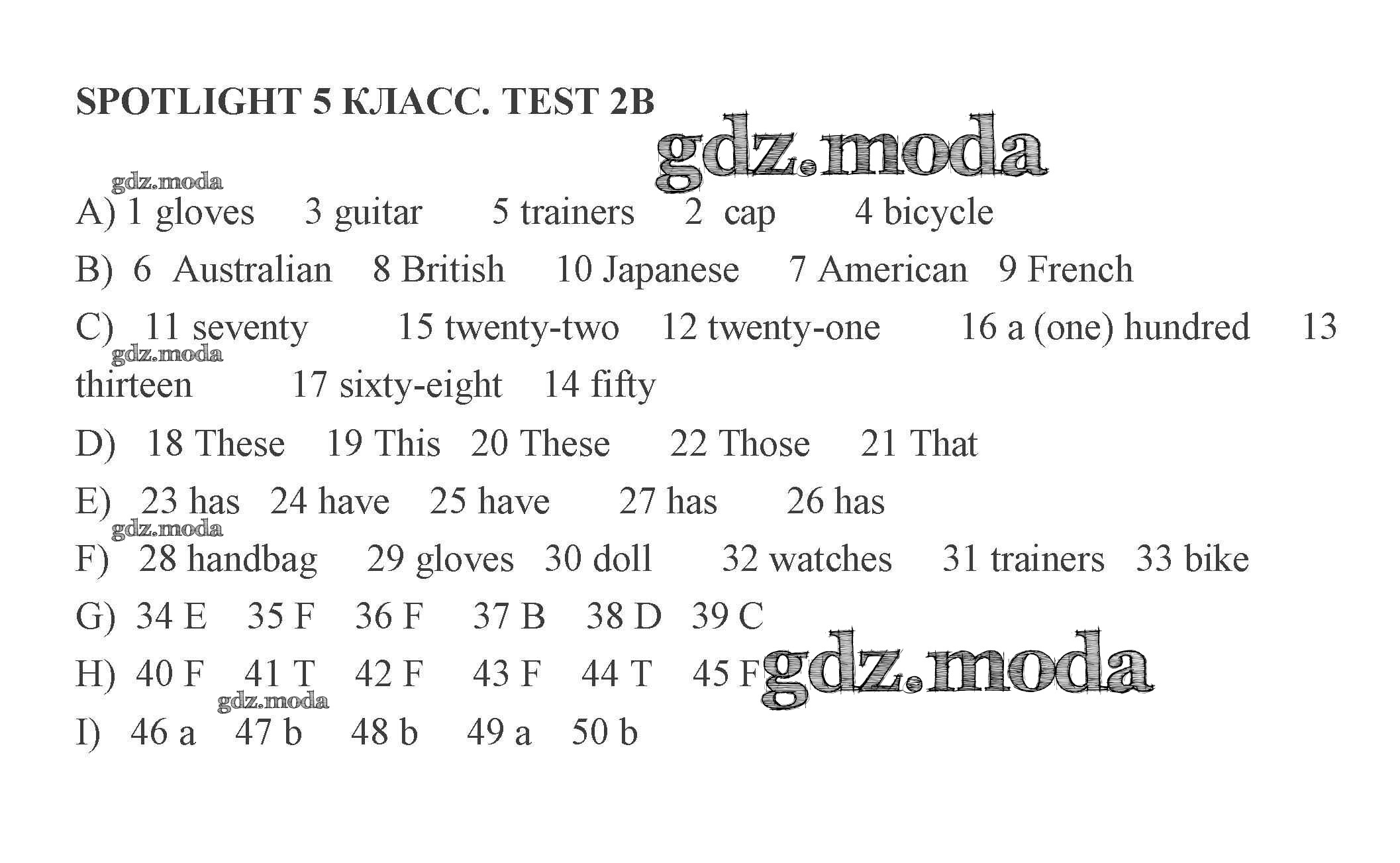 ГДЗ решение к заданию № 2 Английский язык 5 класс контрольные задания Ваулина Spotlight Просвещение 2018 бесплатно на гдз.мода!