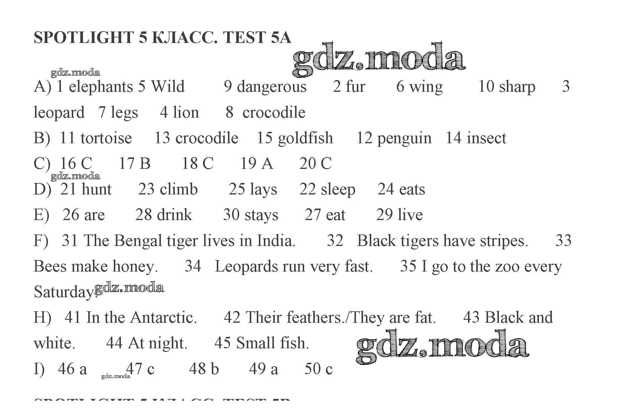 ГДЗ решение к заданию № 1 Английский язык 5 класс контрольные задания Ваулина Spotlight Просвещение 2018 бесплатно на гдз.мода!