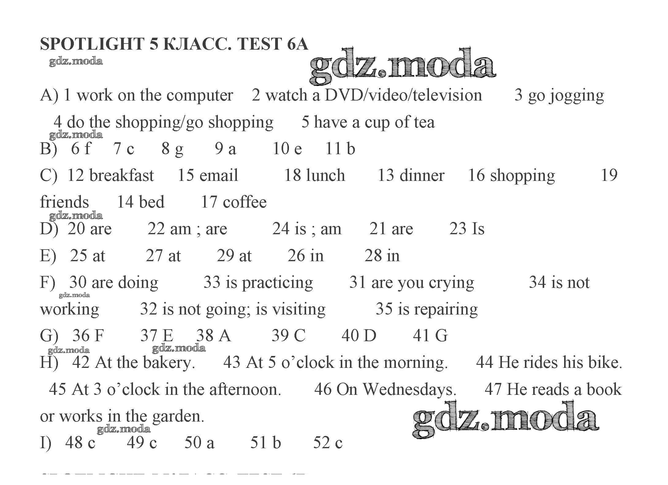 ГДЗ решение к заданию № 1 Английский язык 5 класс контрольные задания Ваулина Spotlight Просвещение 2018 бесплатно на гдз.мода!