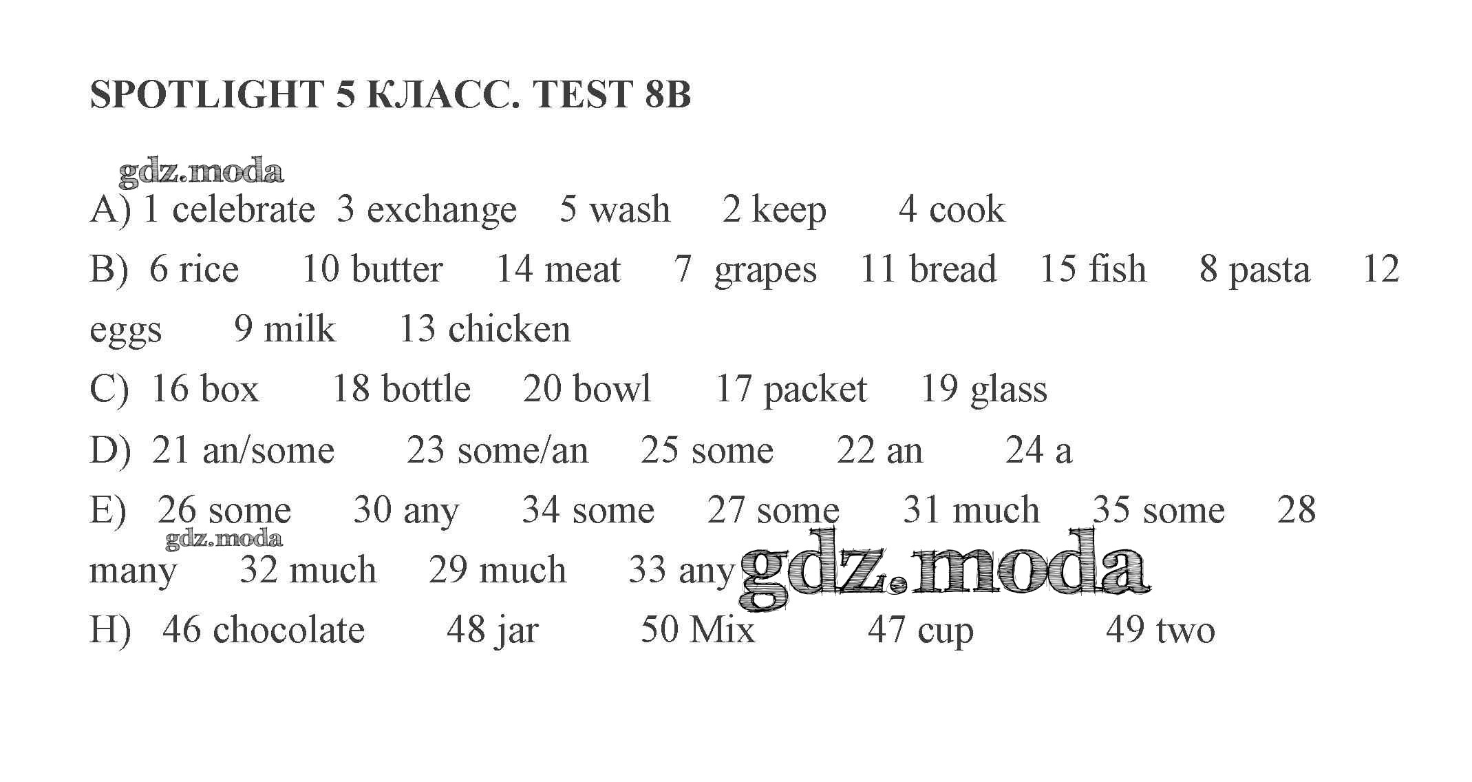 ГДЗ решение к заданию № 2 Английский язык 5 класс контрольные задания Ваулина Spotlight Просвещение 2018 бесплатно на гдз.мода!