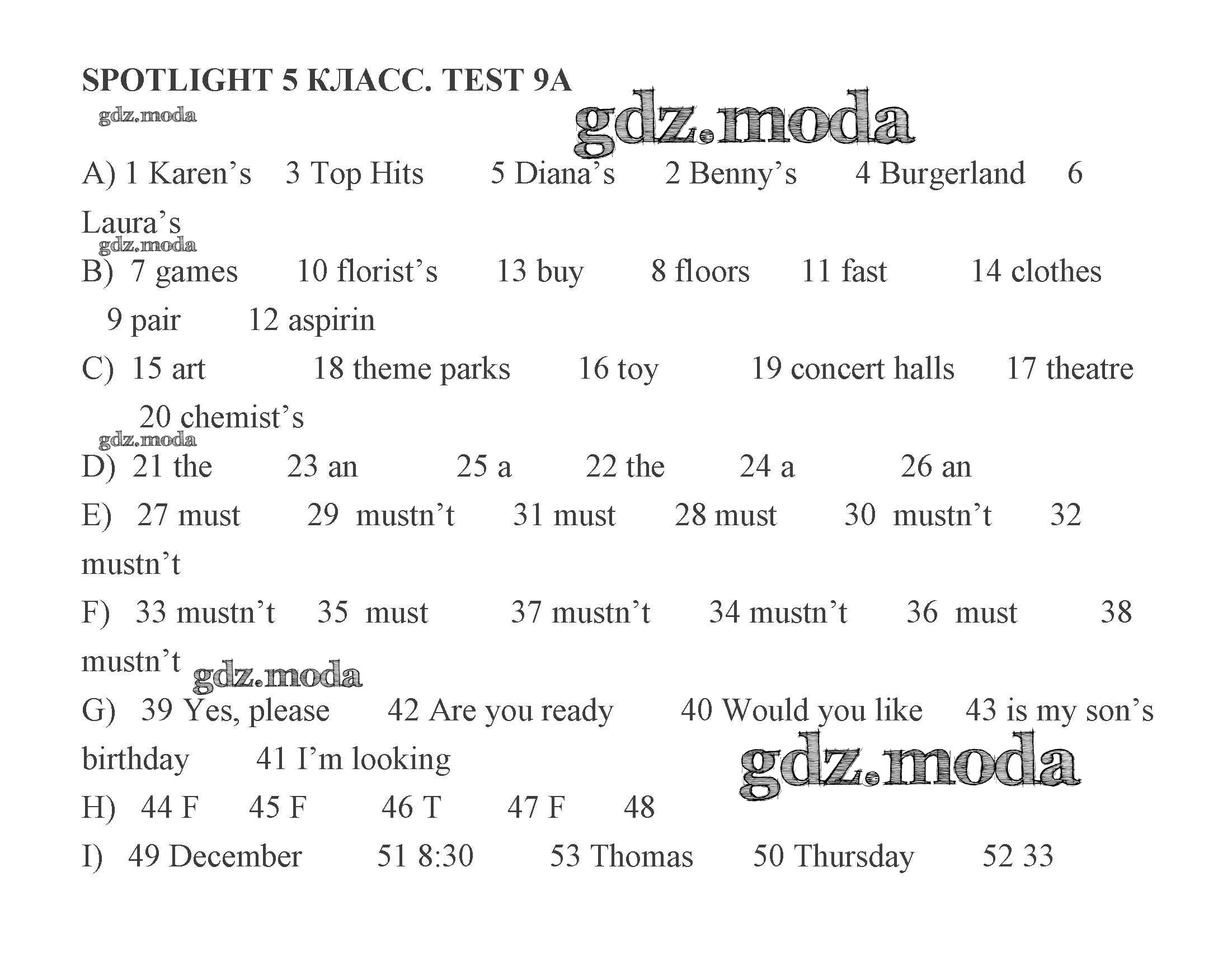 ГДЗ решение к заданию № 1 Английский язык 5 класс контрольные задания Ваулина Spotlight Просвещение 2018 бесплатно на гдз.мода!
