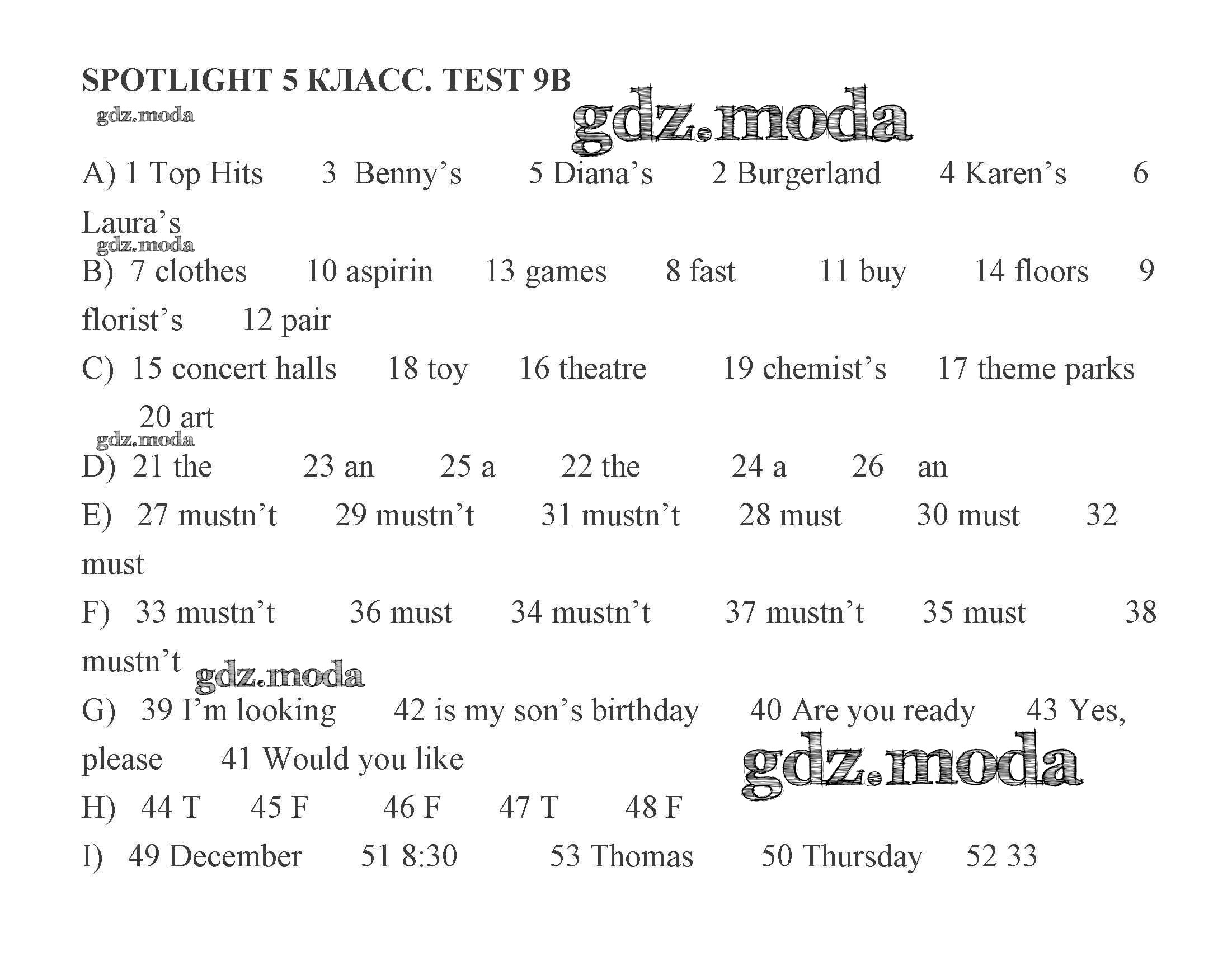 ГДЗ решение к заданию № 2 Английский язык 5 класс контрольные задания Ваулина Spotlight Просвещение 2018 бесплатно на гдз.мода!