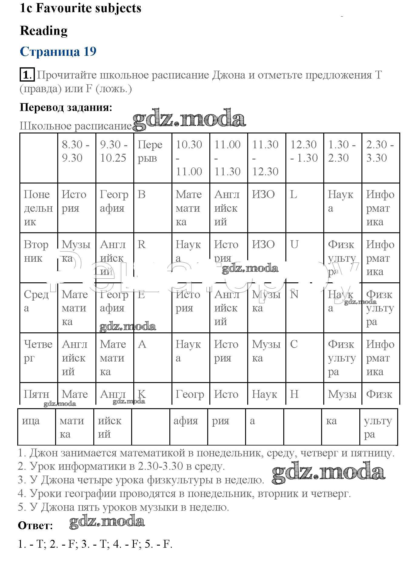 ОТВЕТ на задание № 19 Рабочая тетрадь по Английскому языку 5 класс Ваулина Spotlight