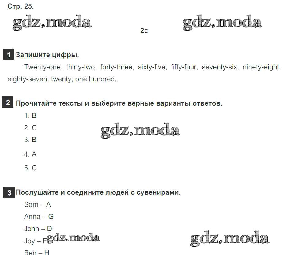 ОТВЕТ на задание № 25 Рабочая тетрадь по Английскому языку 5 класс Ваулина Spotlight