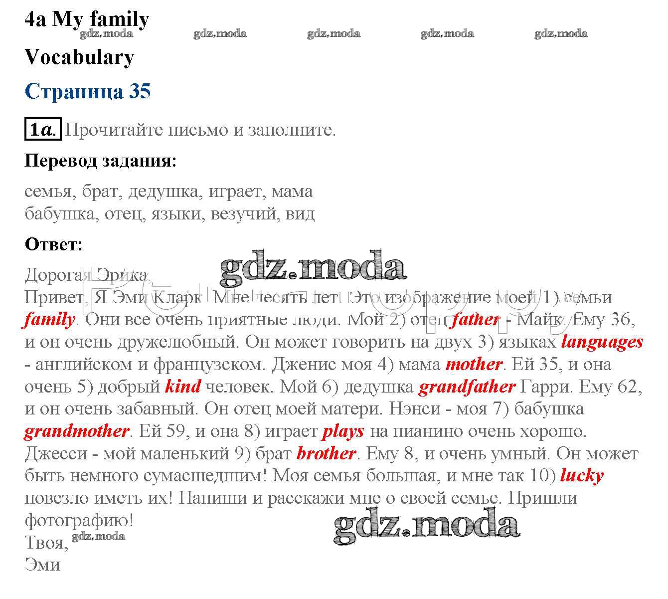 ОТВЕТ на задание № 35 Рабочая тетрадь по Английскому языку 5 класс Ваулина Spotlight