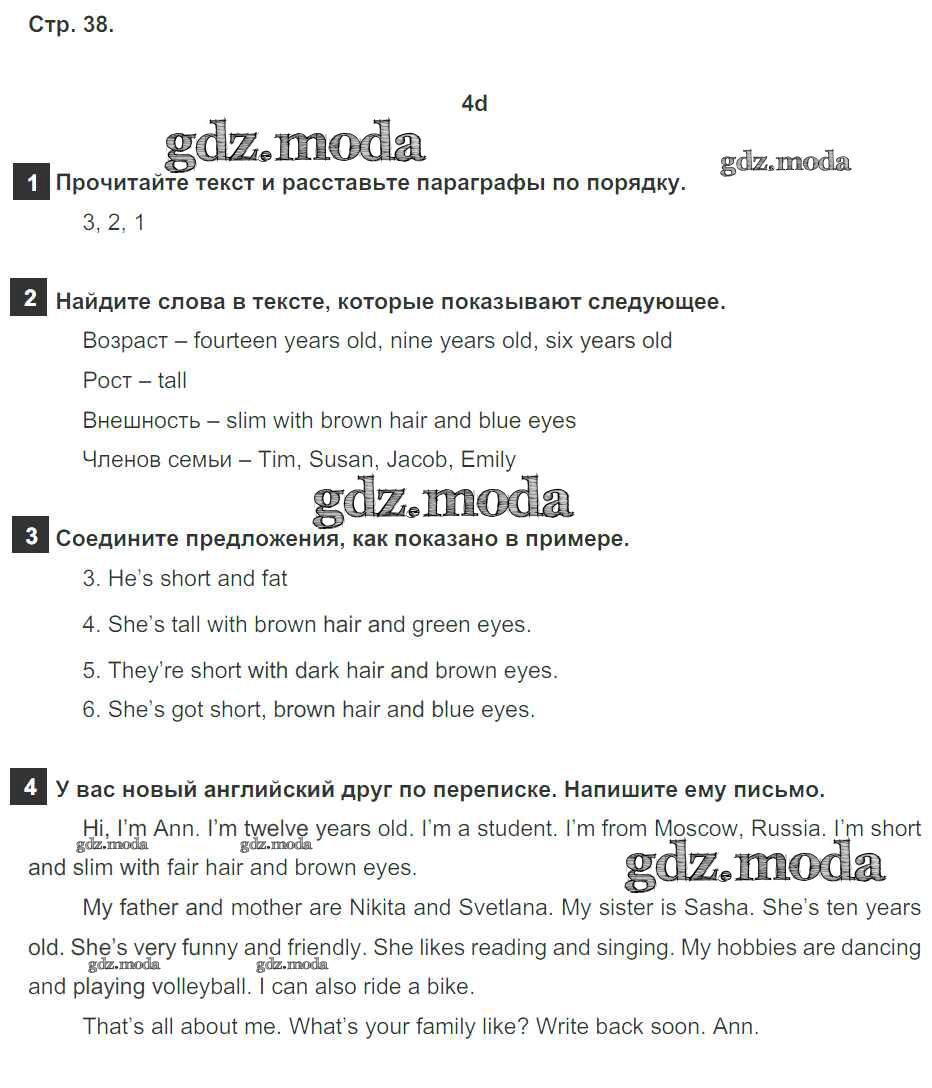 ОТВЕТ на задание № 38 Рабочая тетрадь по Английскому языку 5 класс Ваулина Spotlight