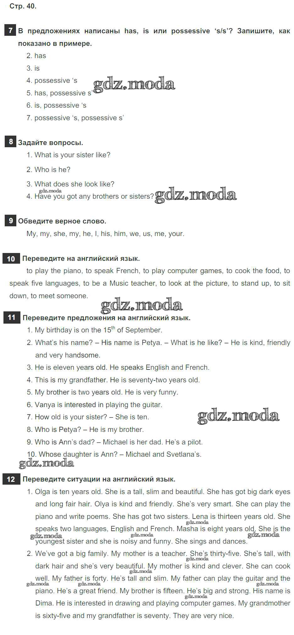 ОТВЕТ на задание № 40 Рабочая тетрадь по Английскому языку 5 класс Ваулина Spotlight