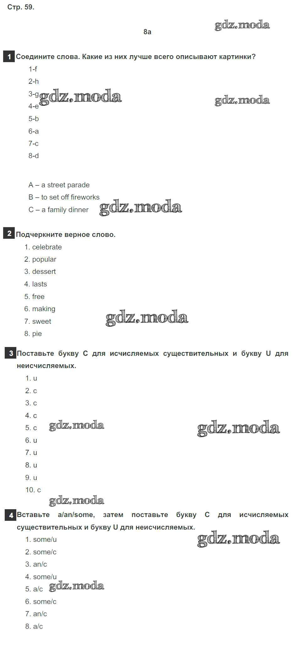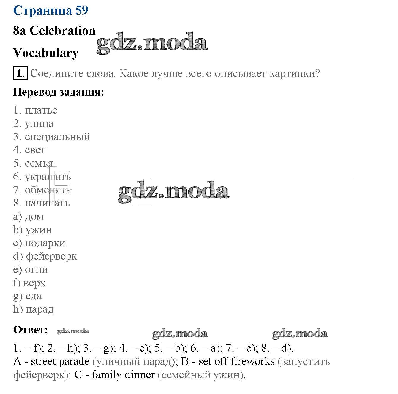 ОТВЕТ на задание № 59 Рабочая тетрадь по Английскому языку 5 класс Ваулина Spotlight