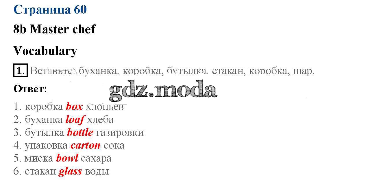 ОТВЕТ на задание № 60 Рабочая тетрадь по Английскому языку 5 класс Ваулина Spotlight