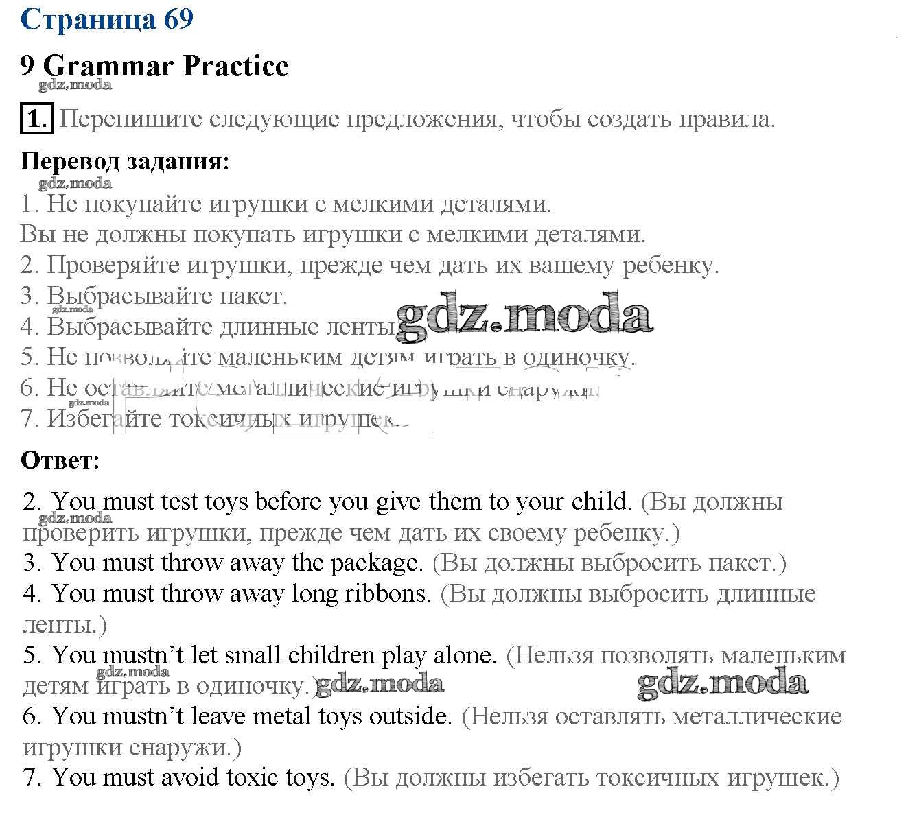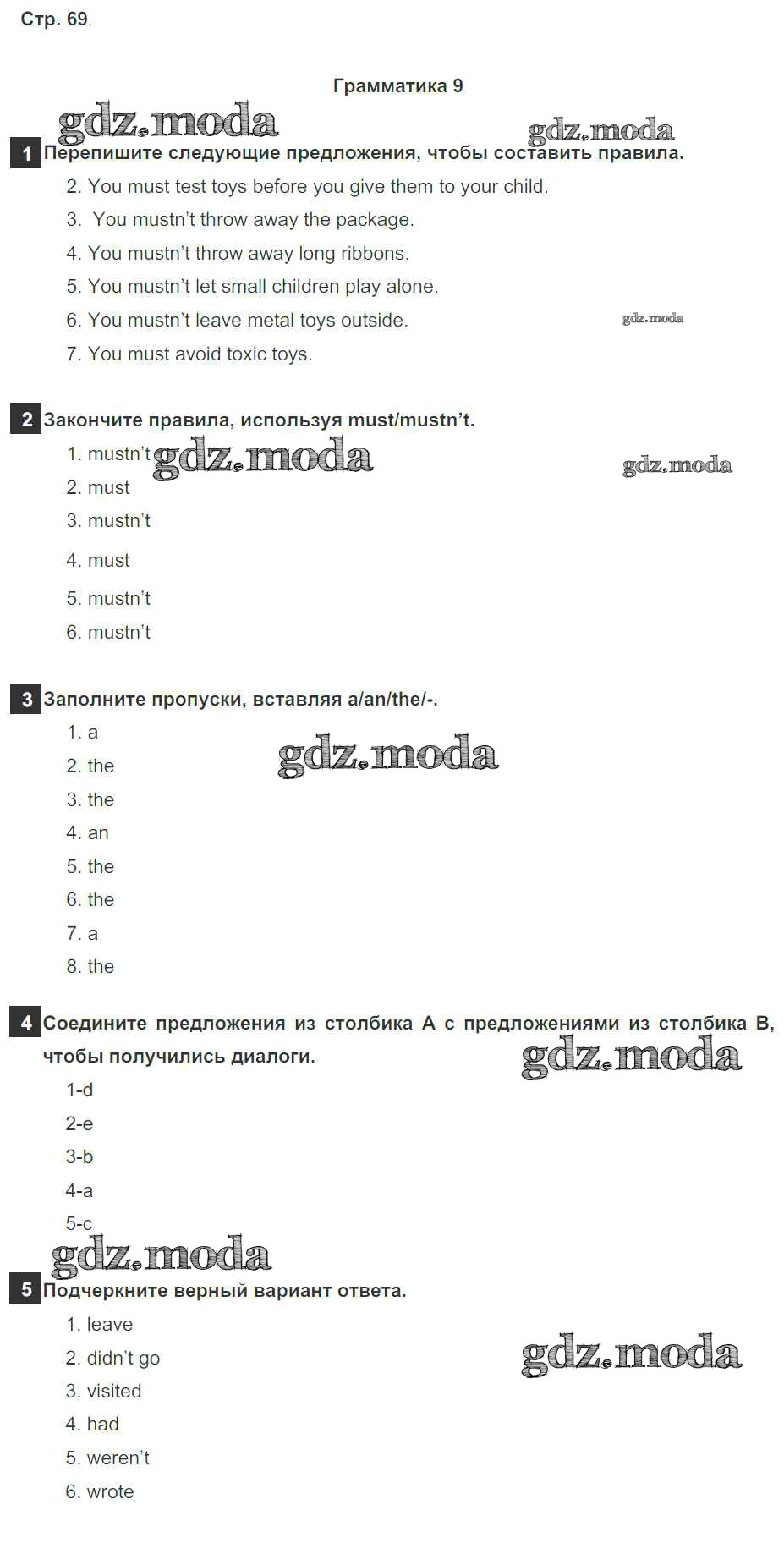 ОТВЕТ на задание № 69 Рабочая тетрадь по Английскому языку 5 класс Ваулина Spotlight