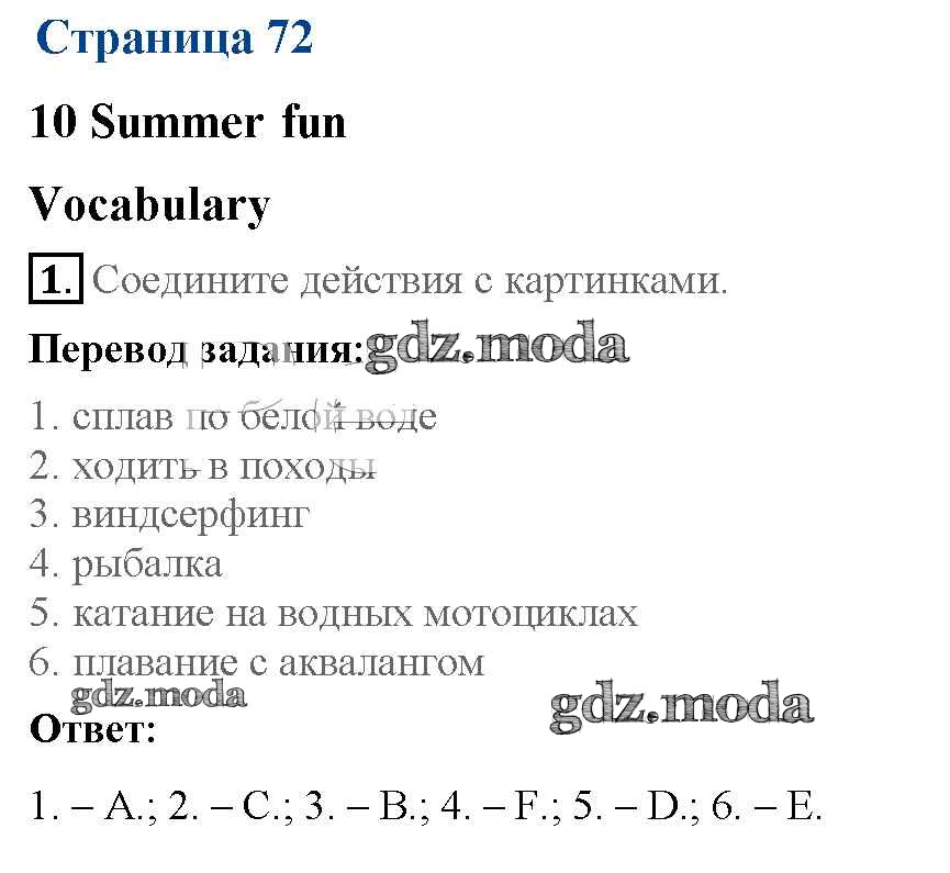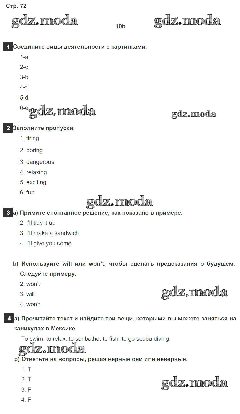 ОТВЕТ на задание № 72 Рабочая тетрадь по Английскому языку 5 класс Ваулина Spotlight