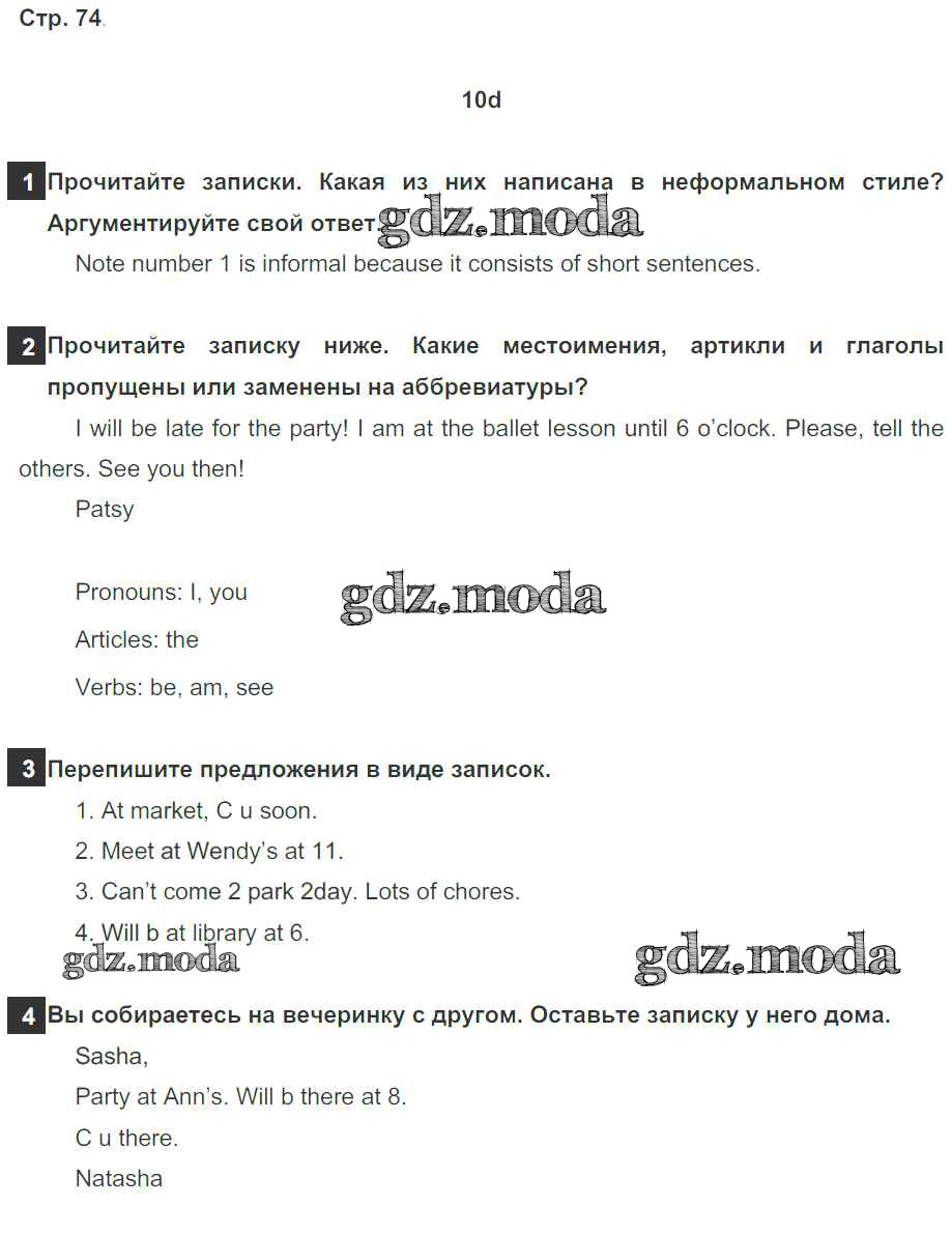 ОТВЕТ на задание № 74 Рабочая тетрадь по Английскому языку 5 класс Ваулина Spotlight