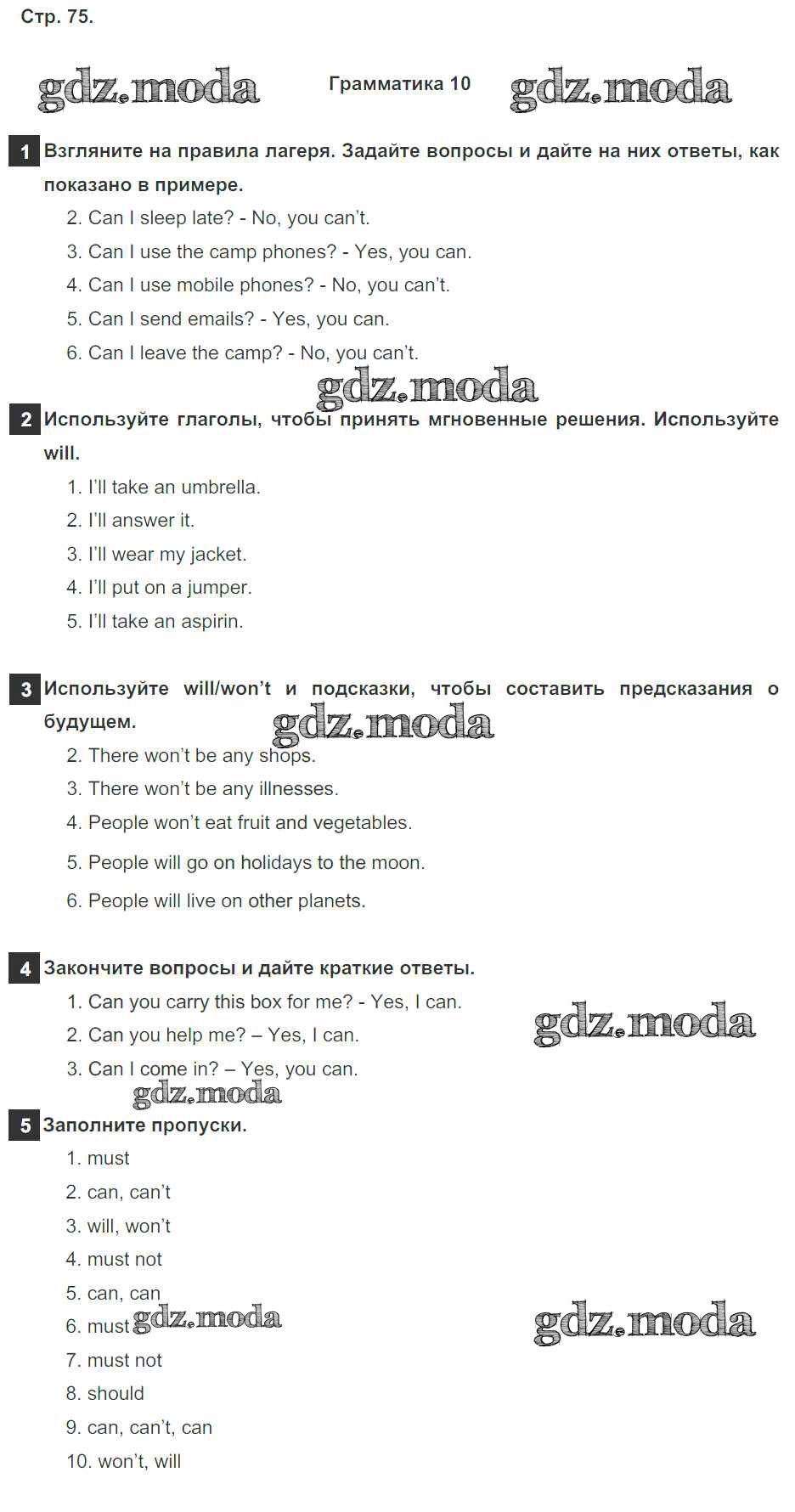 ОТВЕТ на задание № 75 Рабочая тетрадь по Английскому языку 5 класс Ваулина Spotlight