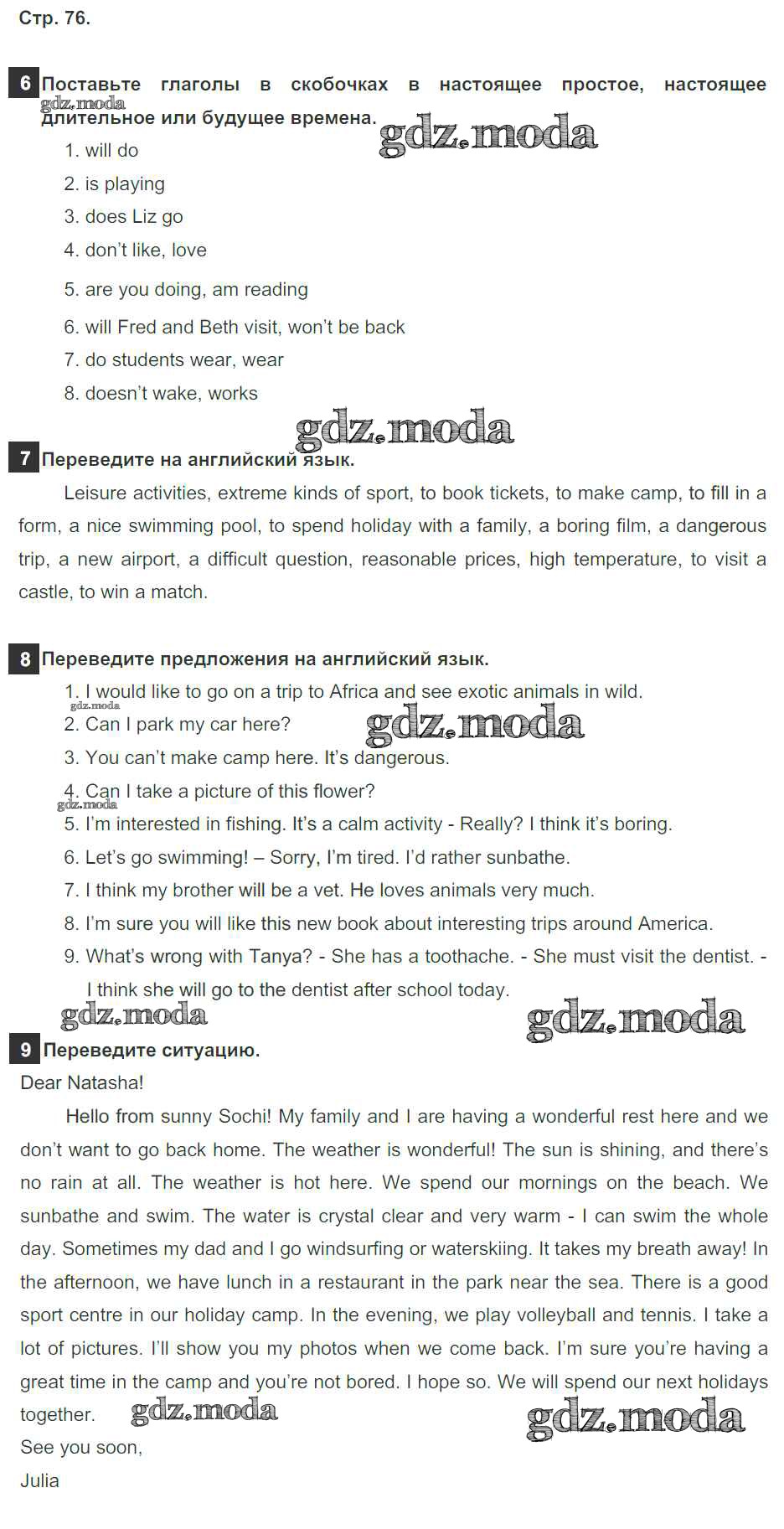 ОТВЕТ на задание № 76 Рабочая тетрадь по Английскому языку 5 класс Ваулина Spotlight