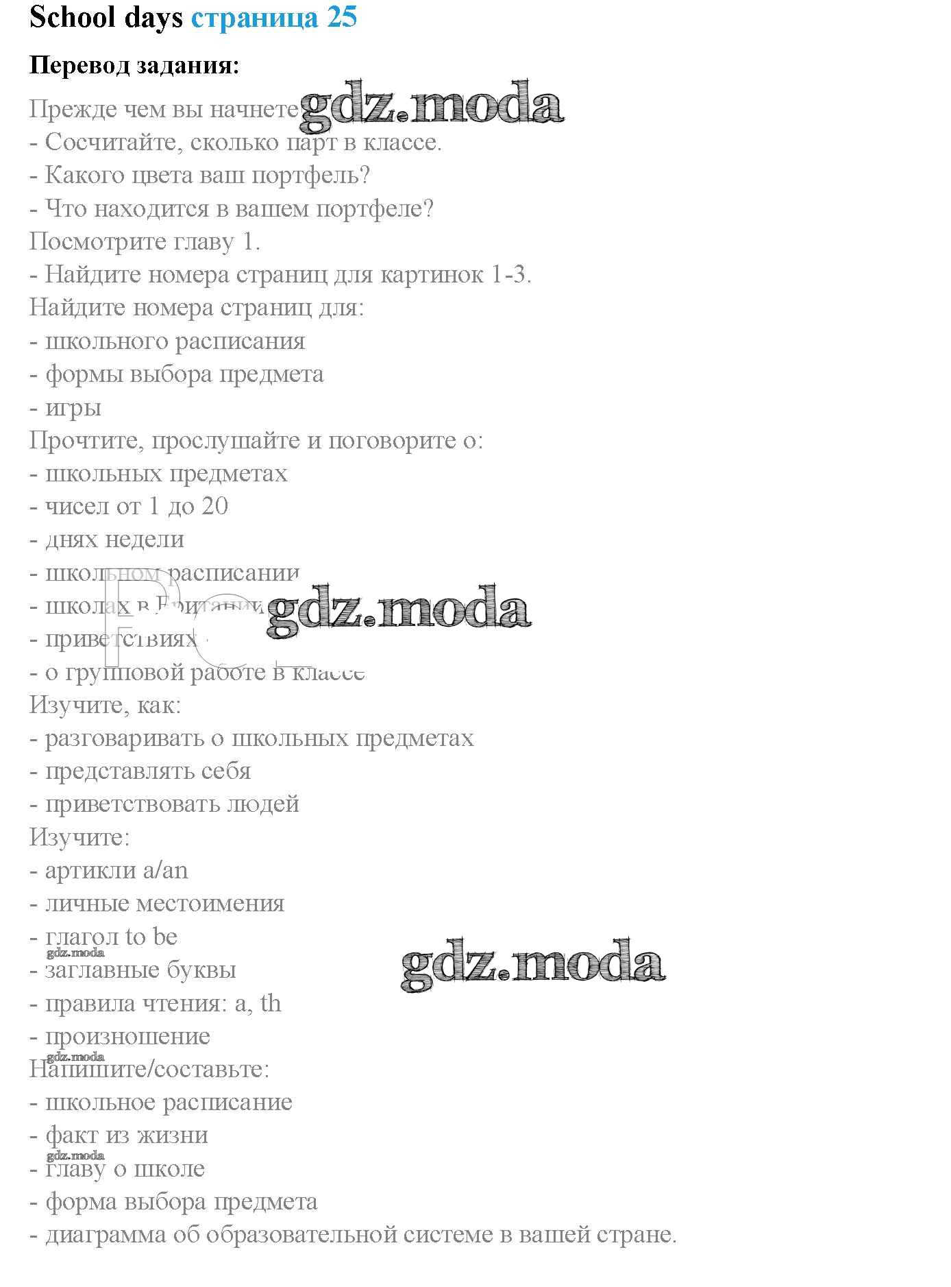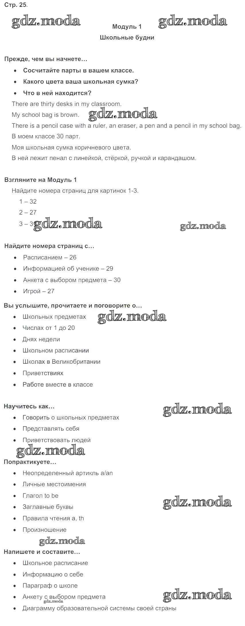 ОТВЕТ на задание № стр. 25 Учебник по Английскому языку 5 класс Ваулина Spotlight