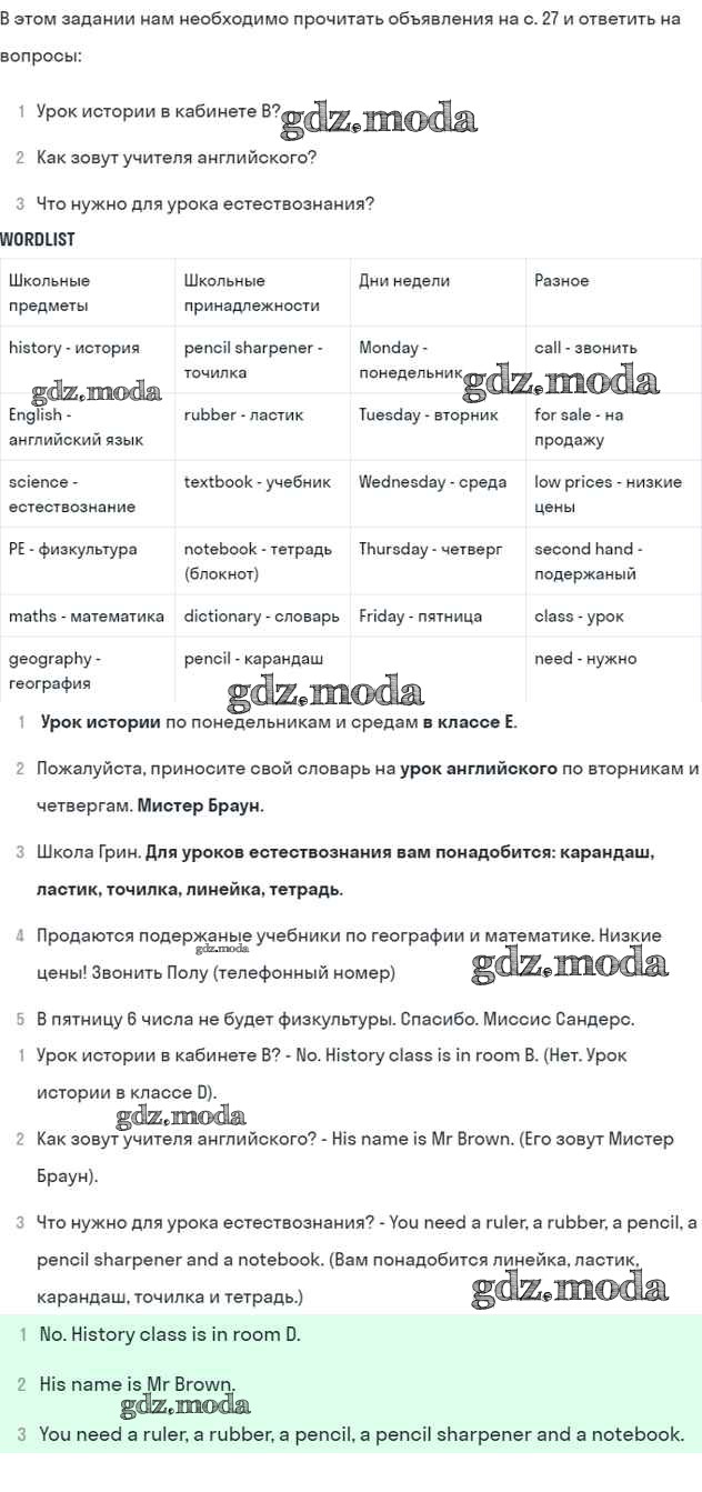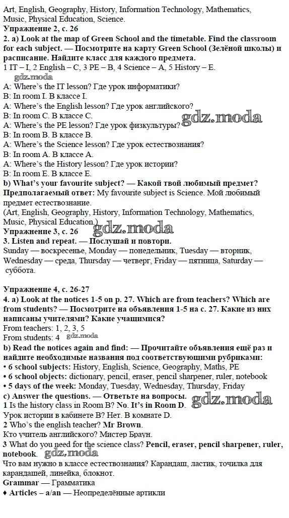 ОТВЕТ на задание № стр. 26 Учебник по Английскому языку 5 класс Ваулина Spotlight