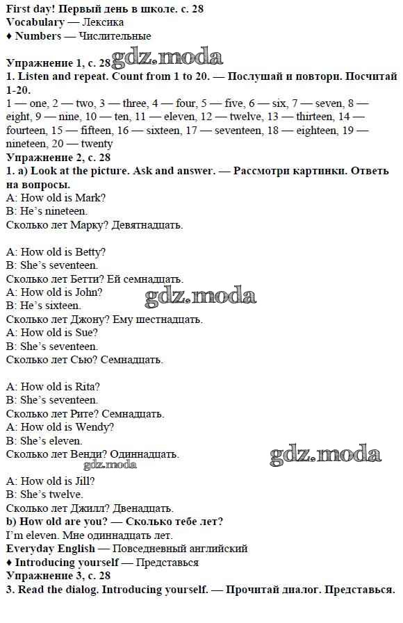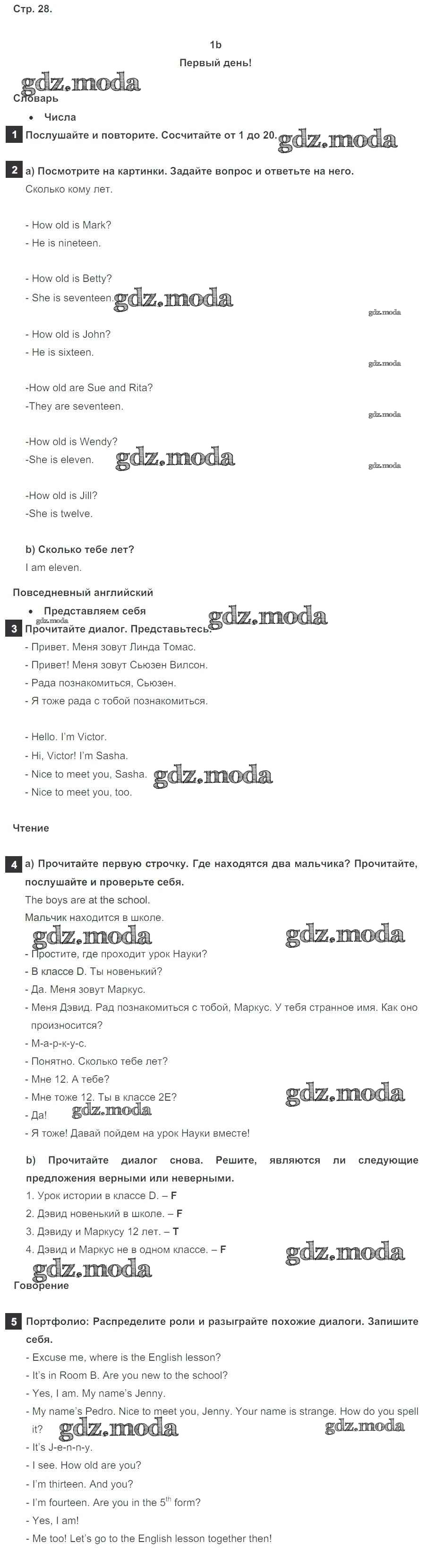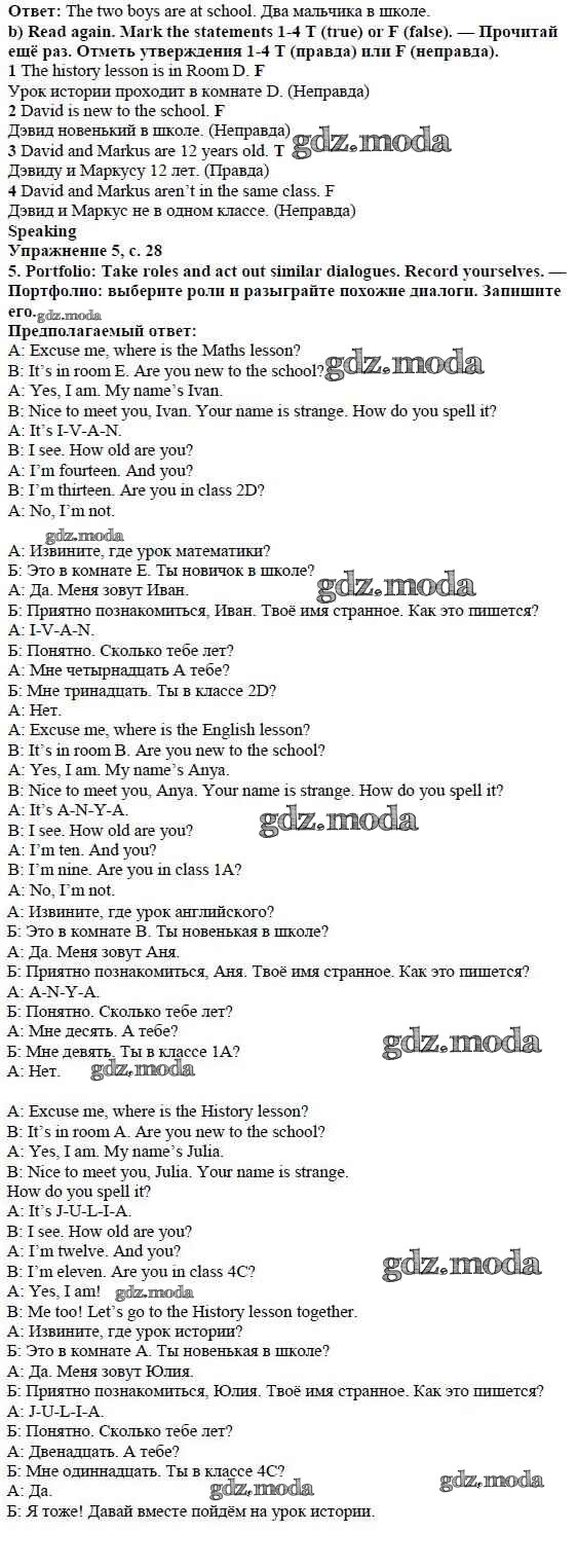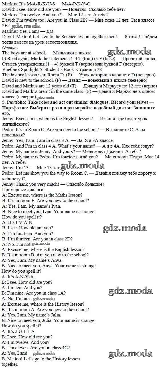 ОТВЕТ на задание № стр. 28 Учебник по Английскому языку 5 класс Ваулина Spotlight